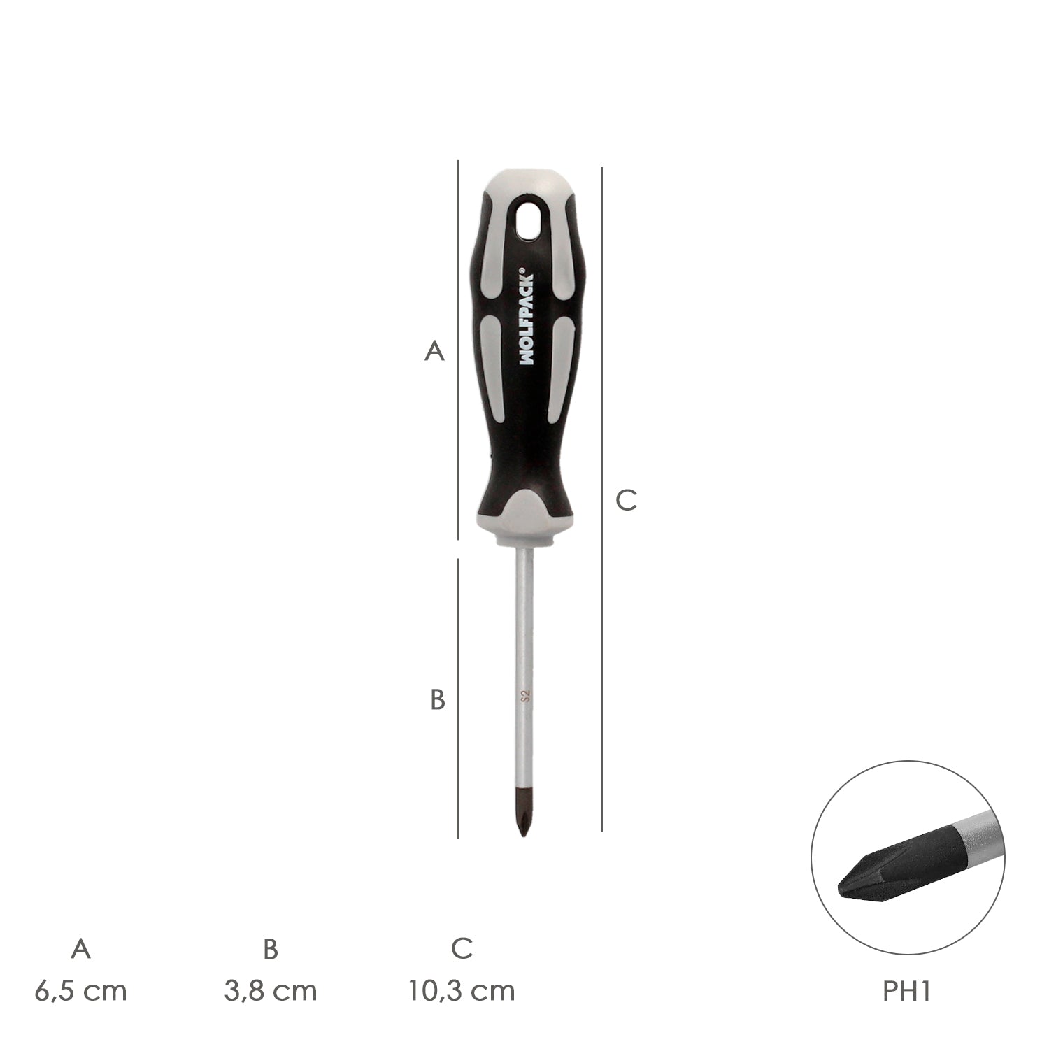 Destornillador Phillips Acero S2 Mango TPR Bimaterial. Medida PH 1 x Ø 5,0 x 38 mm. DIN5262.