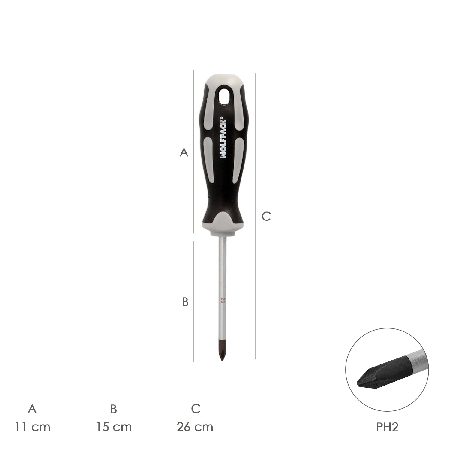 Destornillador Phillips Acero S2 Mango TPR Bimaterial. Medida PH 2 x Ø 6,0 x 150 mm. DIN5262.