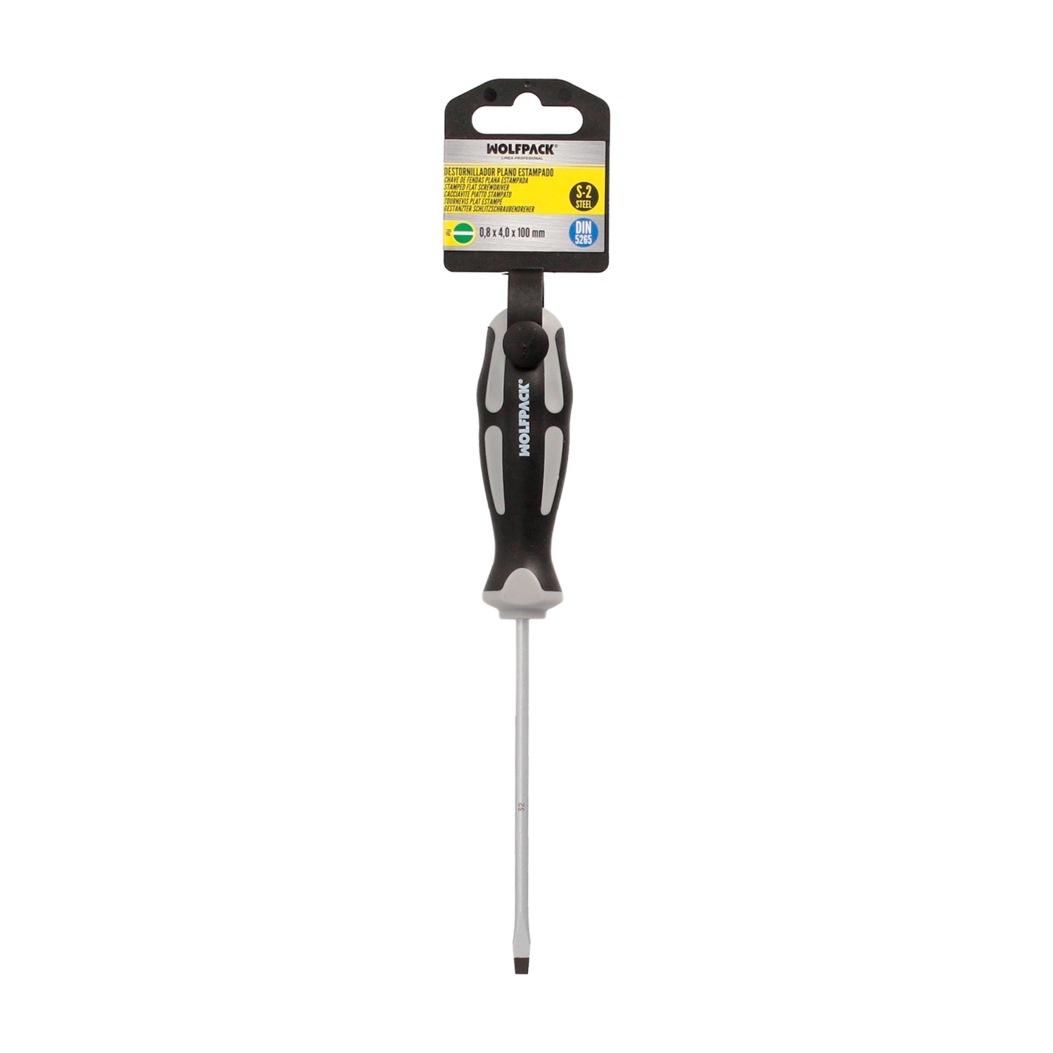 Destornillador Plano Estampado Acero S2 Mango TPR Bimaterial. Medida 0,8 x Ø 4,0 x 100 mm. DIN5265