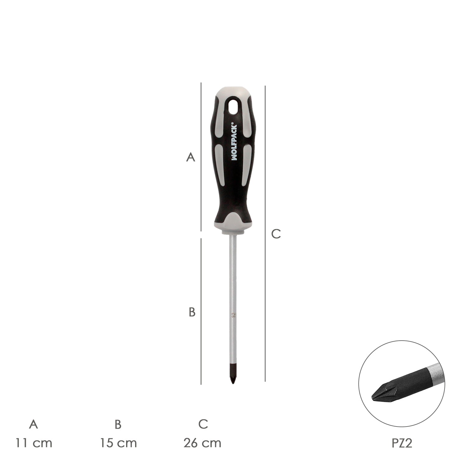 Destornillador Pozidriv Acero S2 Mango TPR Bimaterial. Medida PZ 2 x Ø 6 x 150 mm. DIN5262.