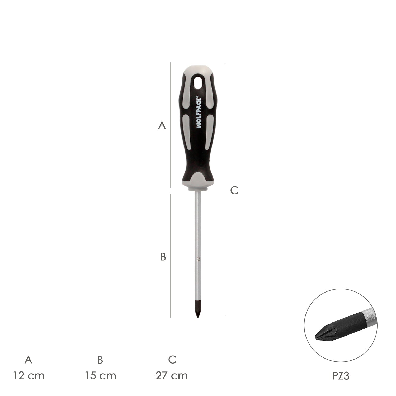 Destornillador Pozidriv Acero S2 Mango TPR Bimaterial. Medida PZ 3 x Ø 8 x 150 mm. DIN5262.