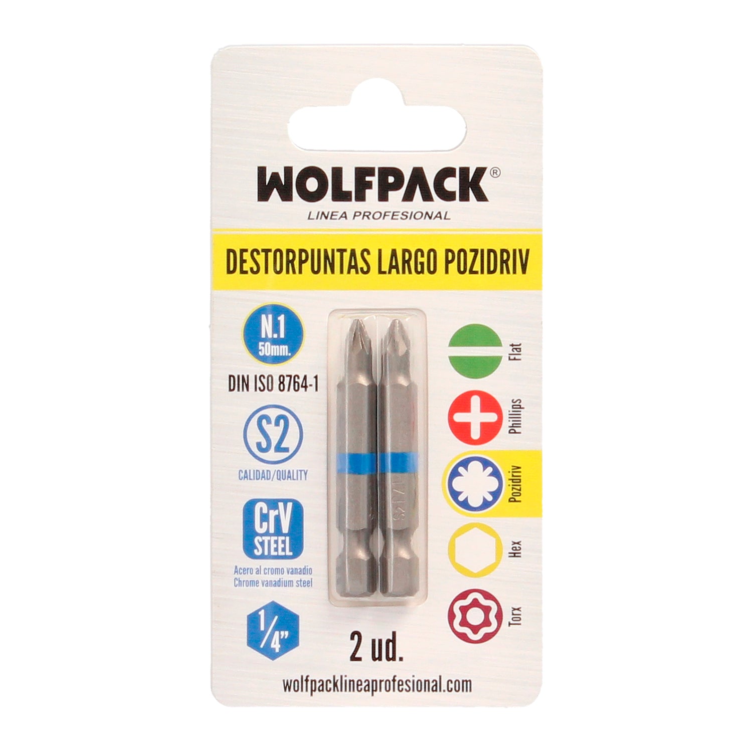 Destorpuntas Largo Pozidriv Nº 1 (2 Piezas) Acero S2 al Cromo Vanadio. Puntas Hexagonales, Destorpuntas,