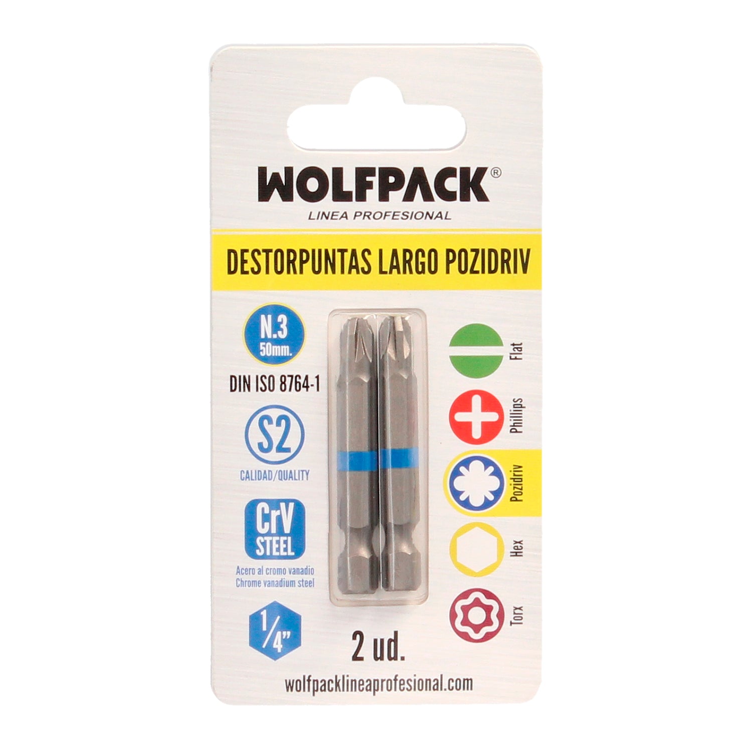 Destorpuntas Largo Pozidriv Nº 3 (2 Piezas) Acero S2 al Cromo Vanadio. Puntas Hexagonales, Destorpuntas,