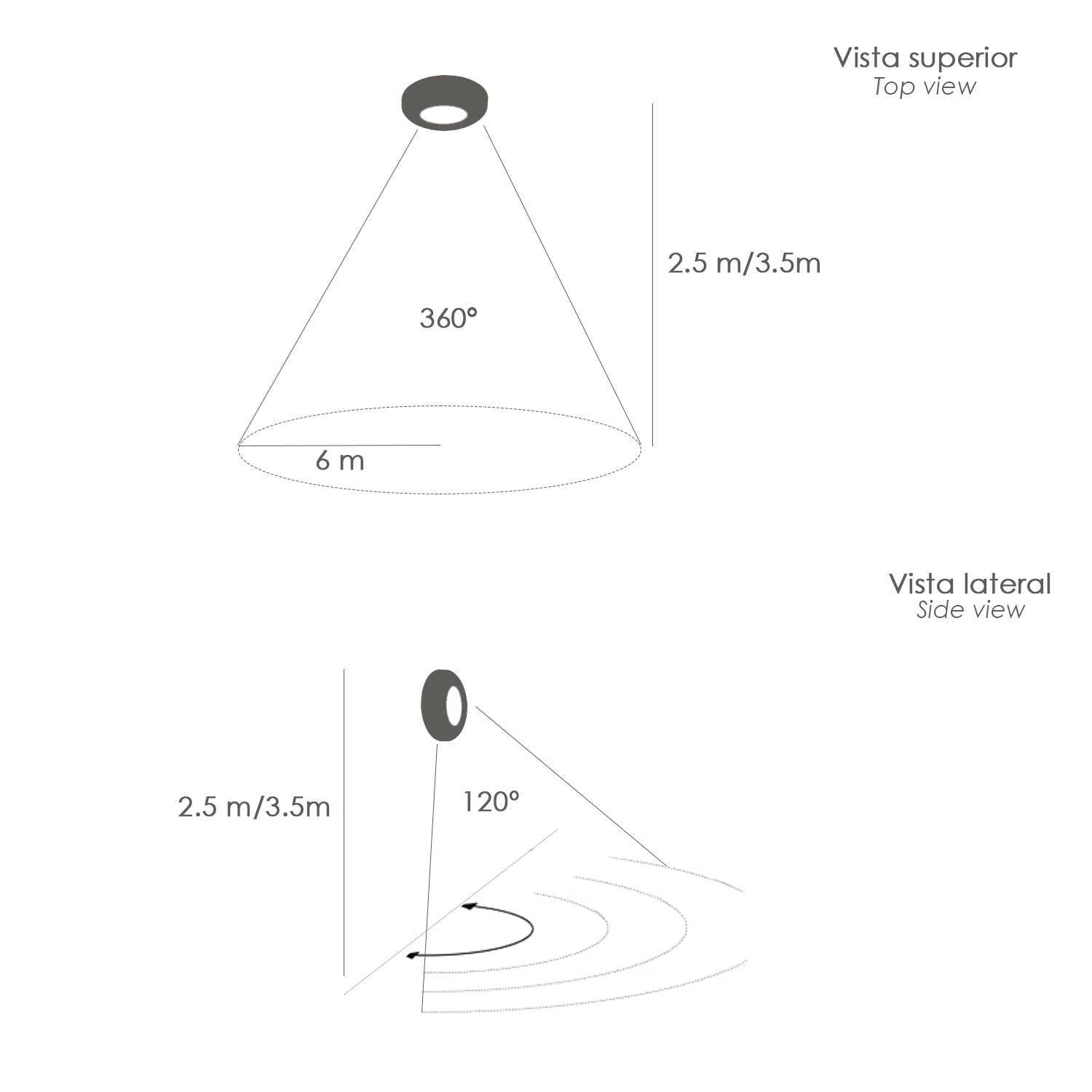 Detector De Movimiento Por Infrarrojos Con Sensor Crepuscular 360°. Ajustable