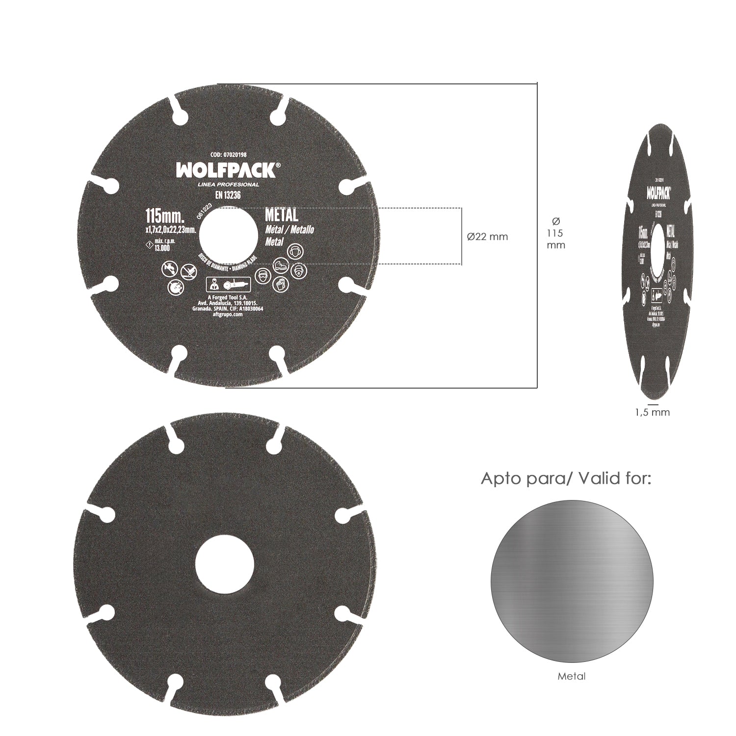 Disco Corte Metales Universal Ø 115 x 1,7 mm. Filo de Diamante Disco Corte Acero, Chapa, Hierro, Aluminio