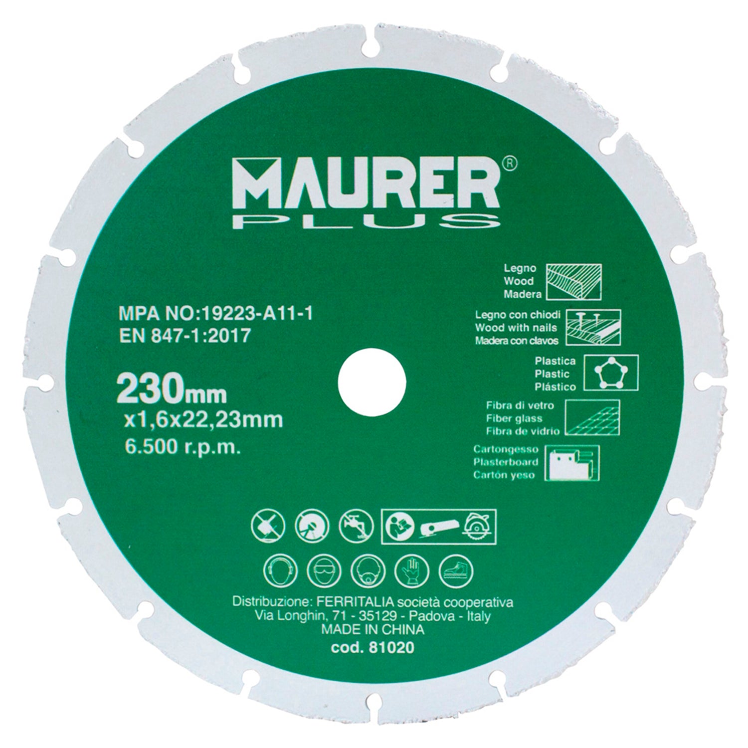 Disco De Corte Para Madera y Plasticos Ø 230 x 1,6 mm.
