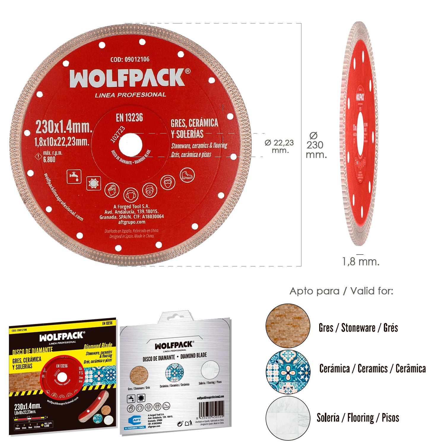 Disco Diamante Ø 230 mm. Porcelanicos, Gres, Ceramica, Solerias. Segmento Diamantado 10 mm.