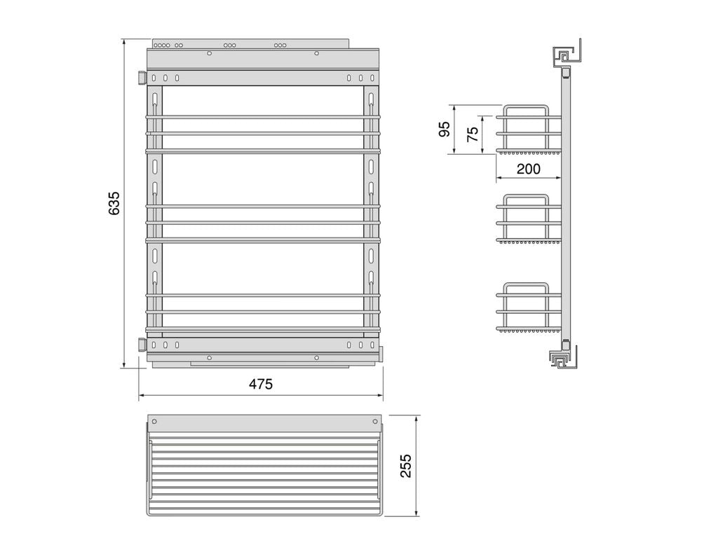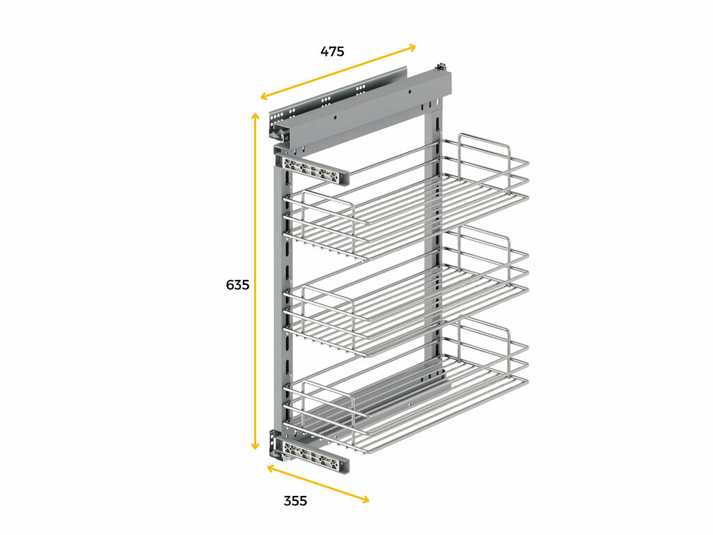 • Módulo 300/400 mm 2 guías, tornillo, estructura, 3 cestos, herrajes para el anclaje de la puerta