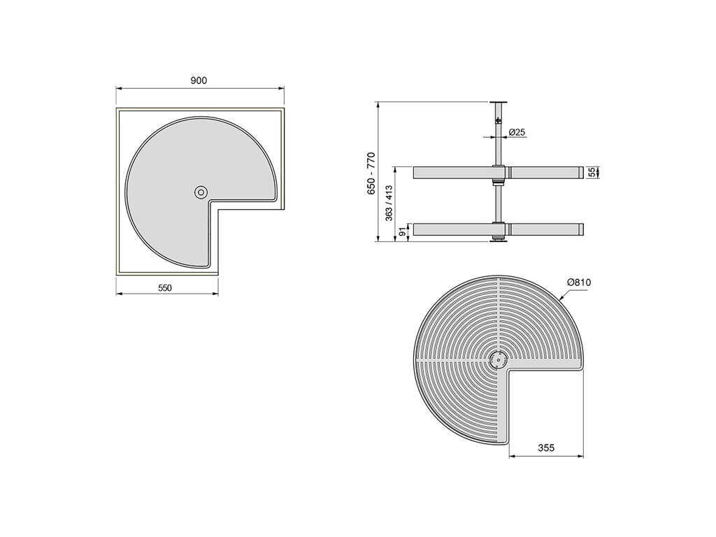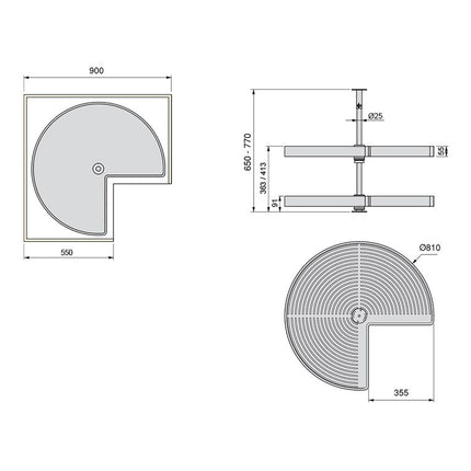 Emuca Juego de bandejas giratorias Shelvo 3/4, Plástico y Aluminio