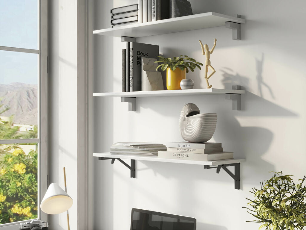 • L 200-400 mm 2 soportes plegables, 6 tornillos y 6 tacos de instalación a pared, y 6 tornillos para madera