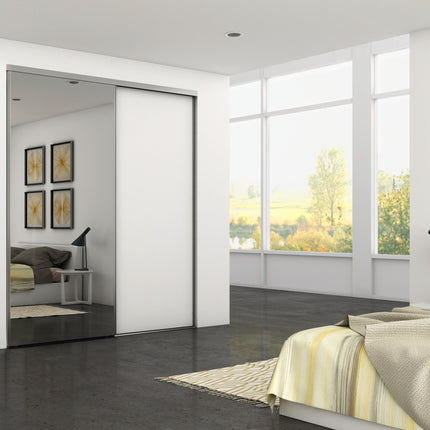 Emuca Kit de herrajes para armario de 2 puertas correderas y cierre suave Placard 81, perfil Wave, espesor 16mm, tableros no incluidos, Anodizado mate