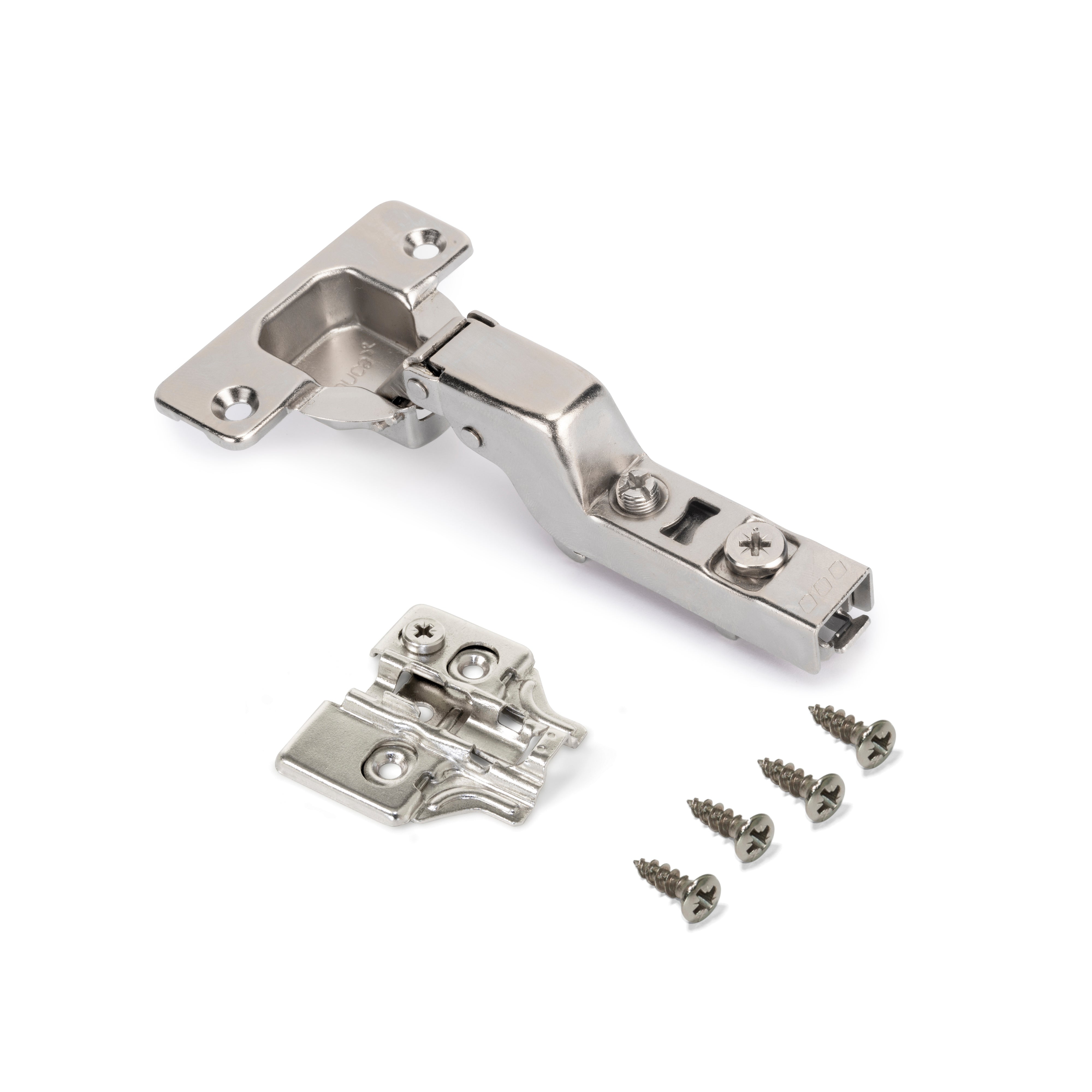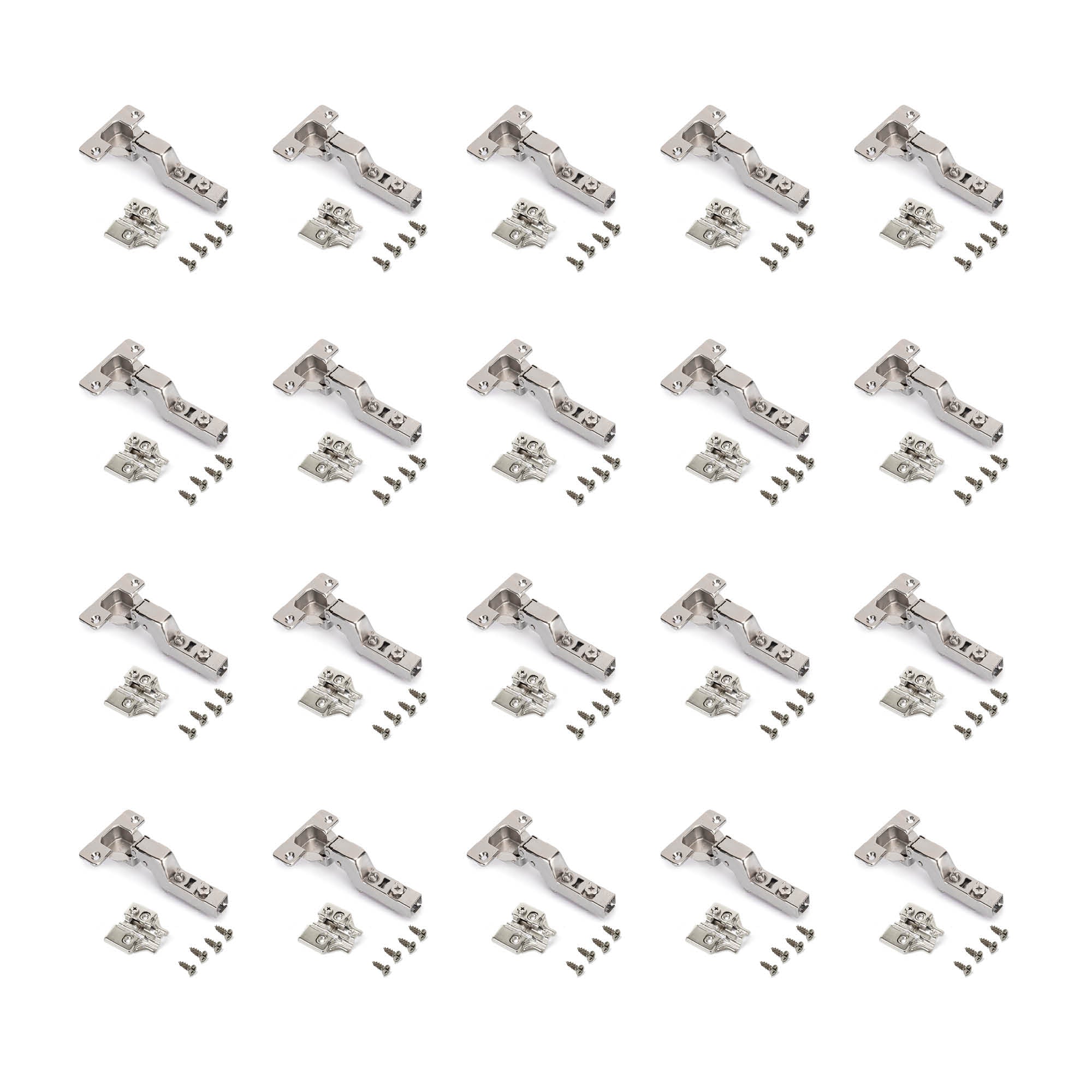 Emuca Lote de 20 bisagras supercodo X92 con cierre suave y suplementos para atornillar, Acero, Niquelado