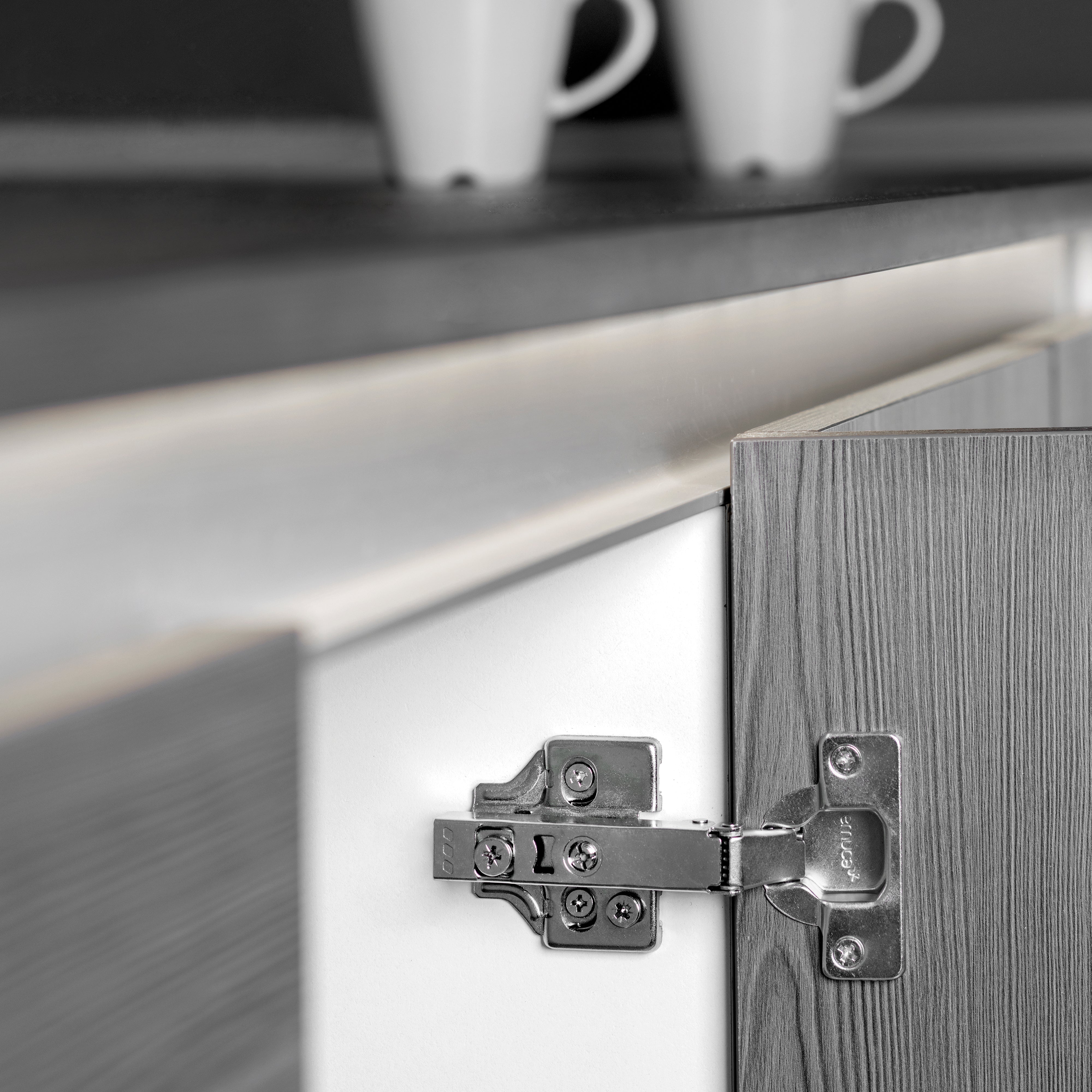 • Recta 20 bisagras rectas, 20 suplementos con regulación excéntrica de altura 0 y 80 tornillos para el montaje