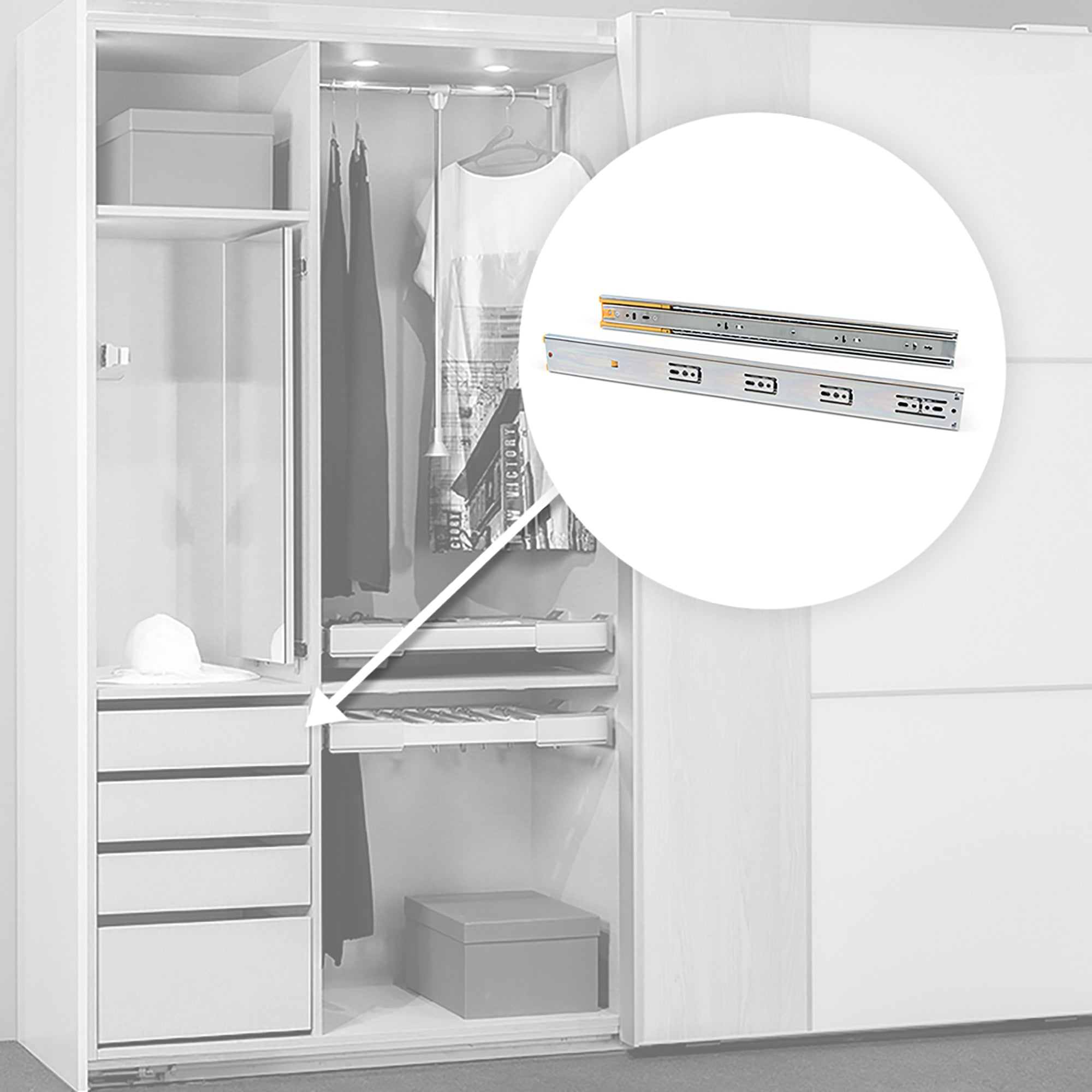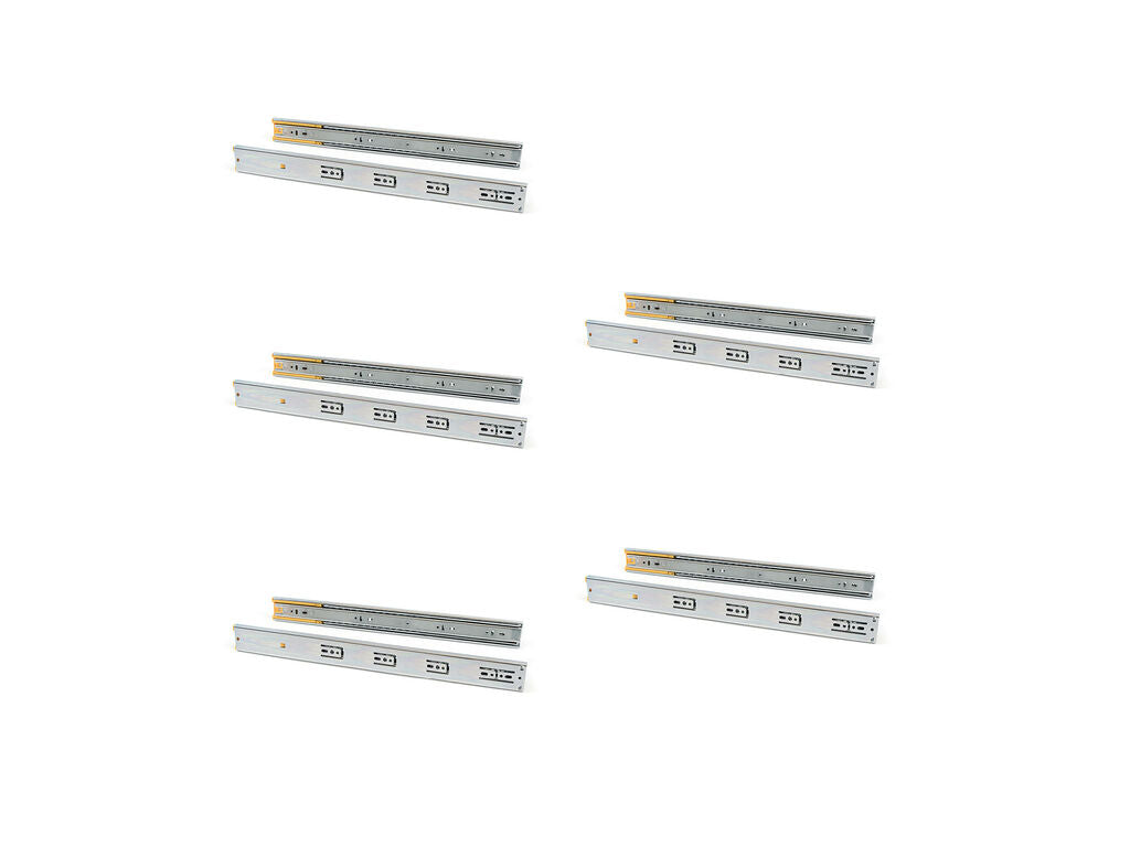 Lote de 5 juegos de guías para cajones, de bolas, altura 45mm extracción total, cierre suave, Cincado
