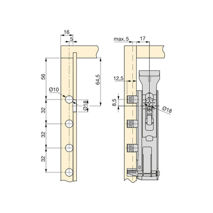 • - 5 colgadores derecha, 5 colgadores izquierda, 5 pletinas