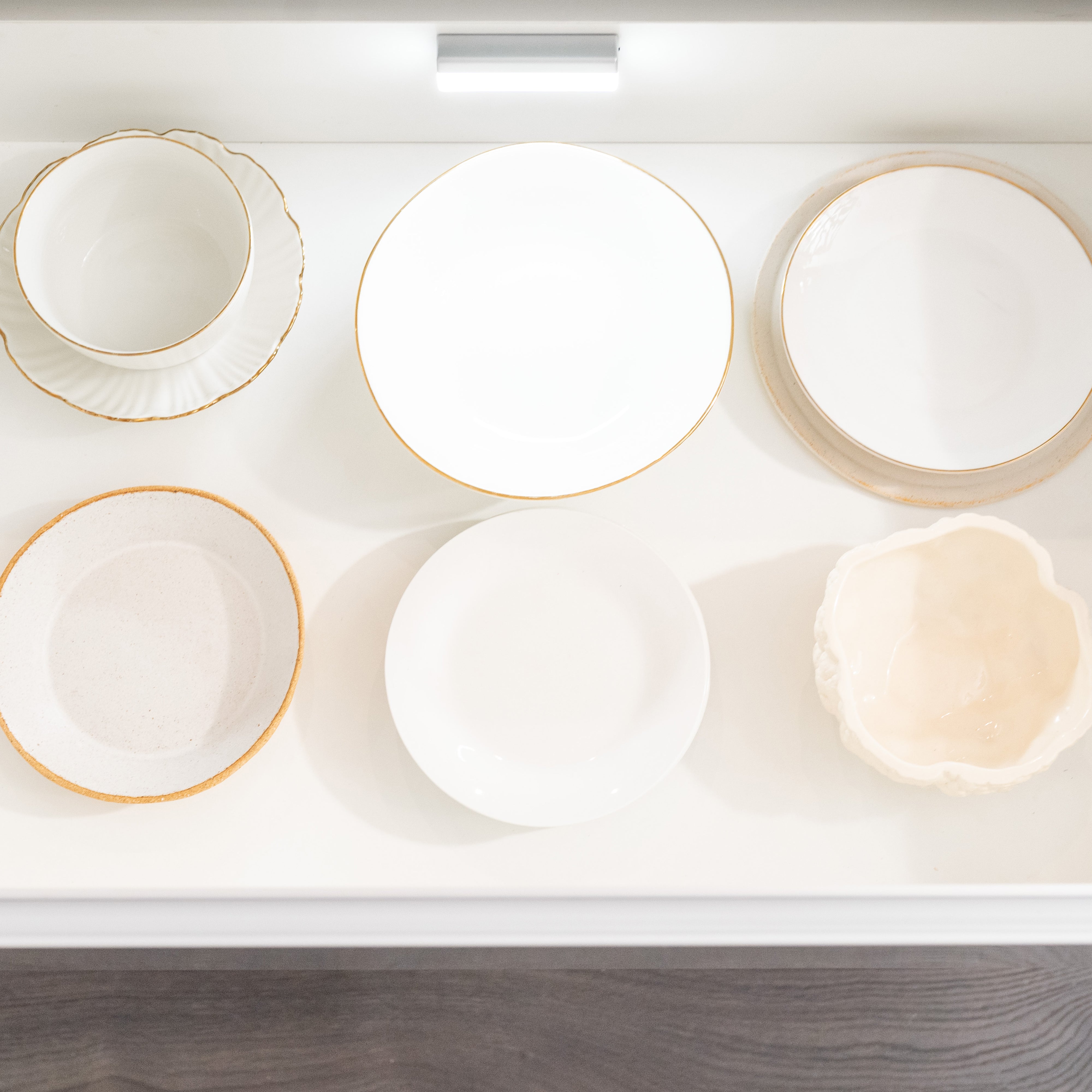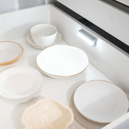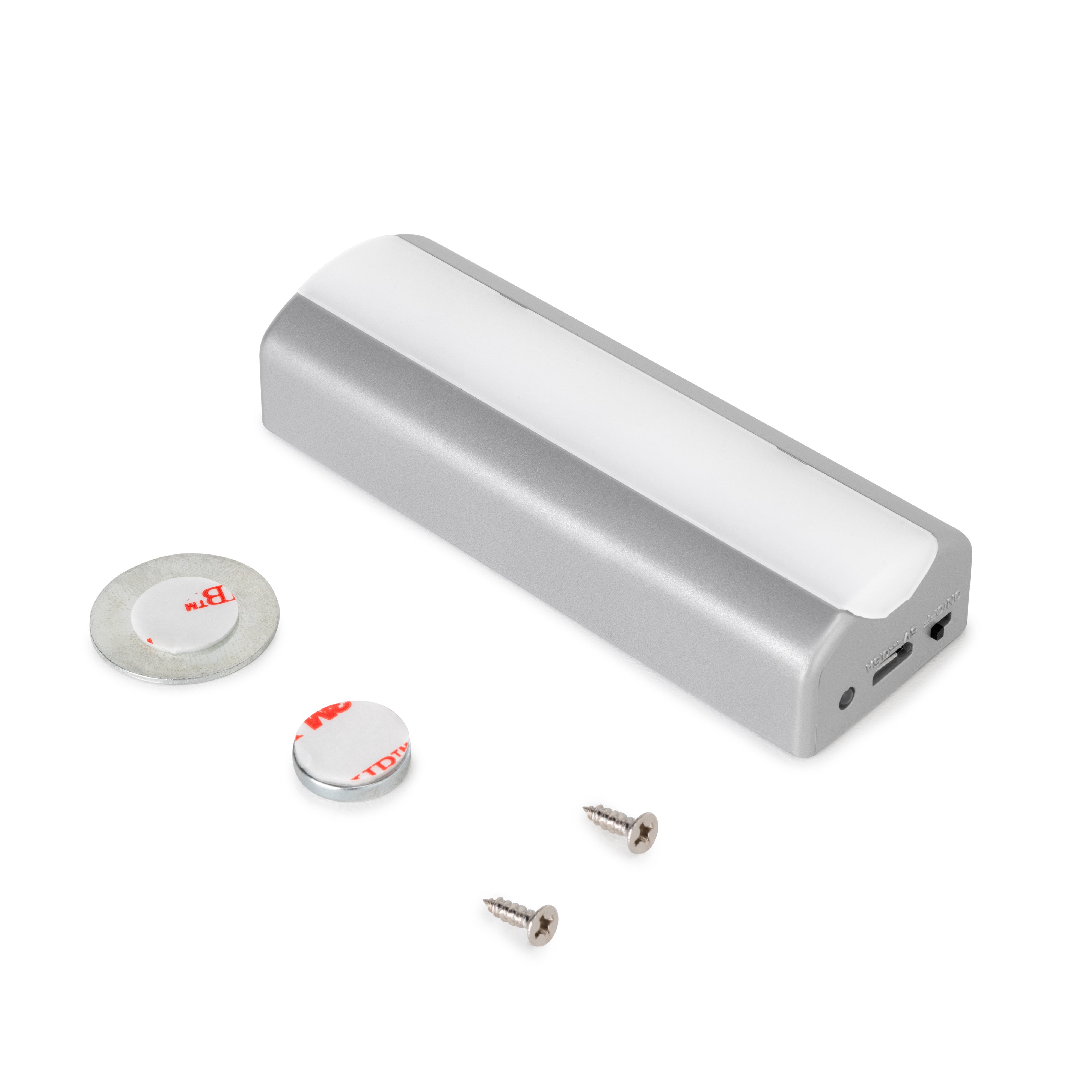 Emuca Luminaria LED Rigel recargable por USB para interior cajones con sensor de vibración, Luz blanca natural 4.000K, Plástico, Gris metalizado