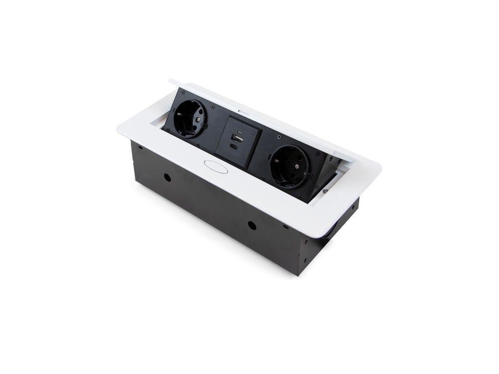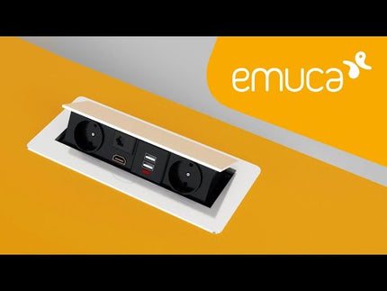 Emuca Multiconector para escritorio Atom 26 Lite, 225x111mm, 2 enchufes tipo Schuko, 1 USB tipo A, 1USB tipo C, Zamak-Acero-Plástico