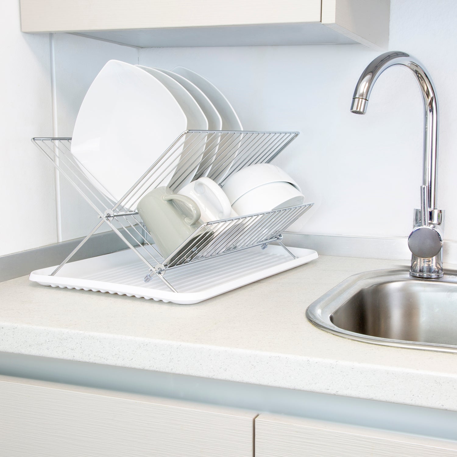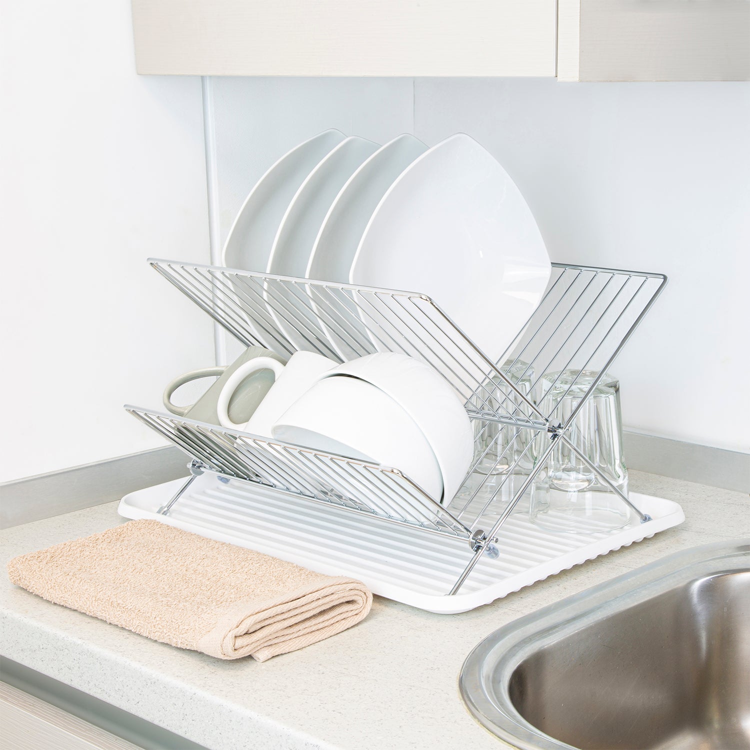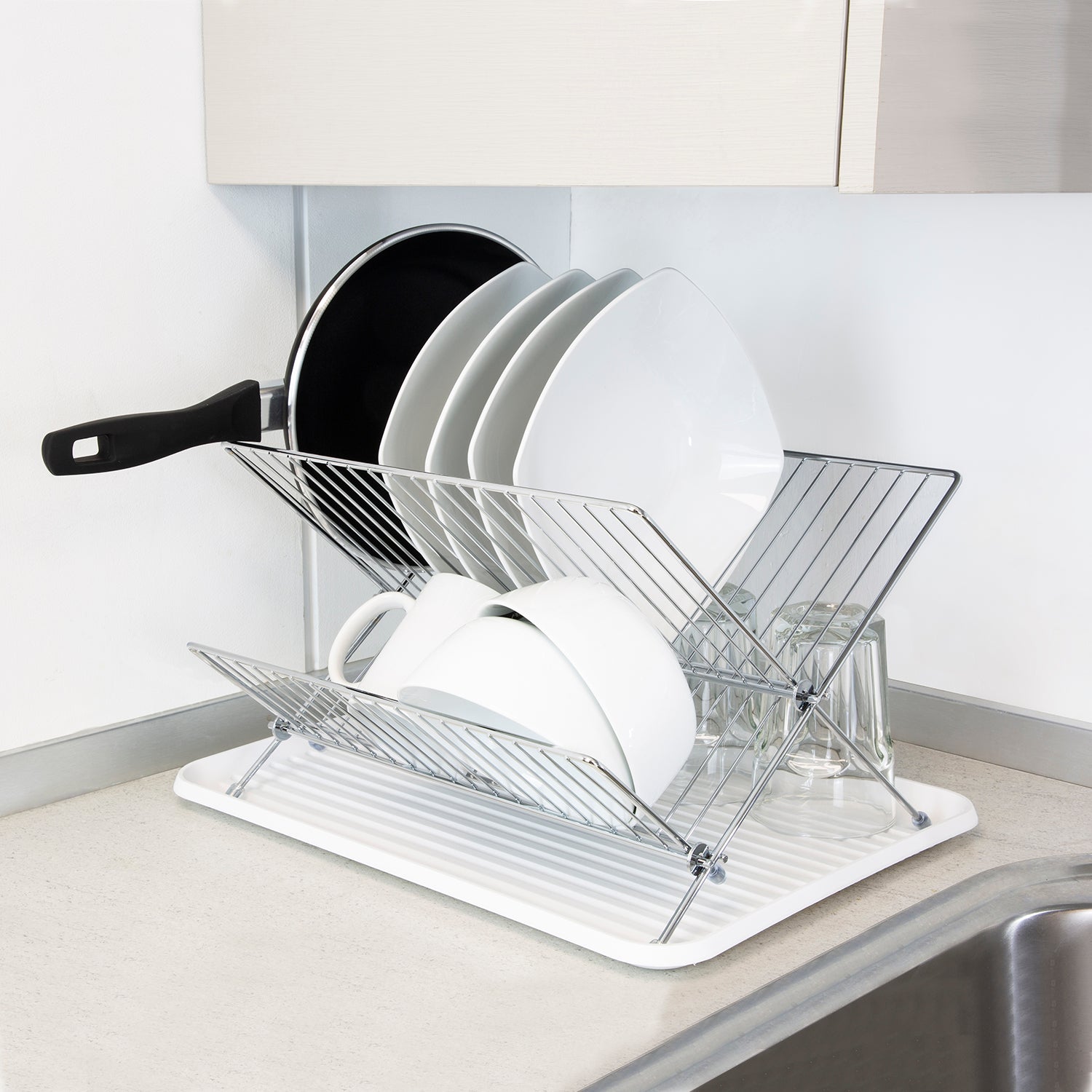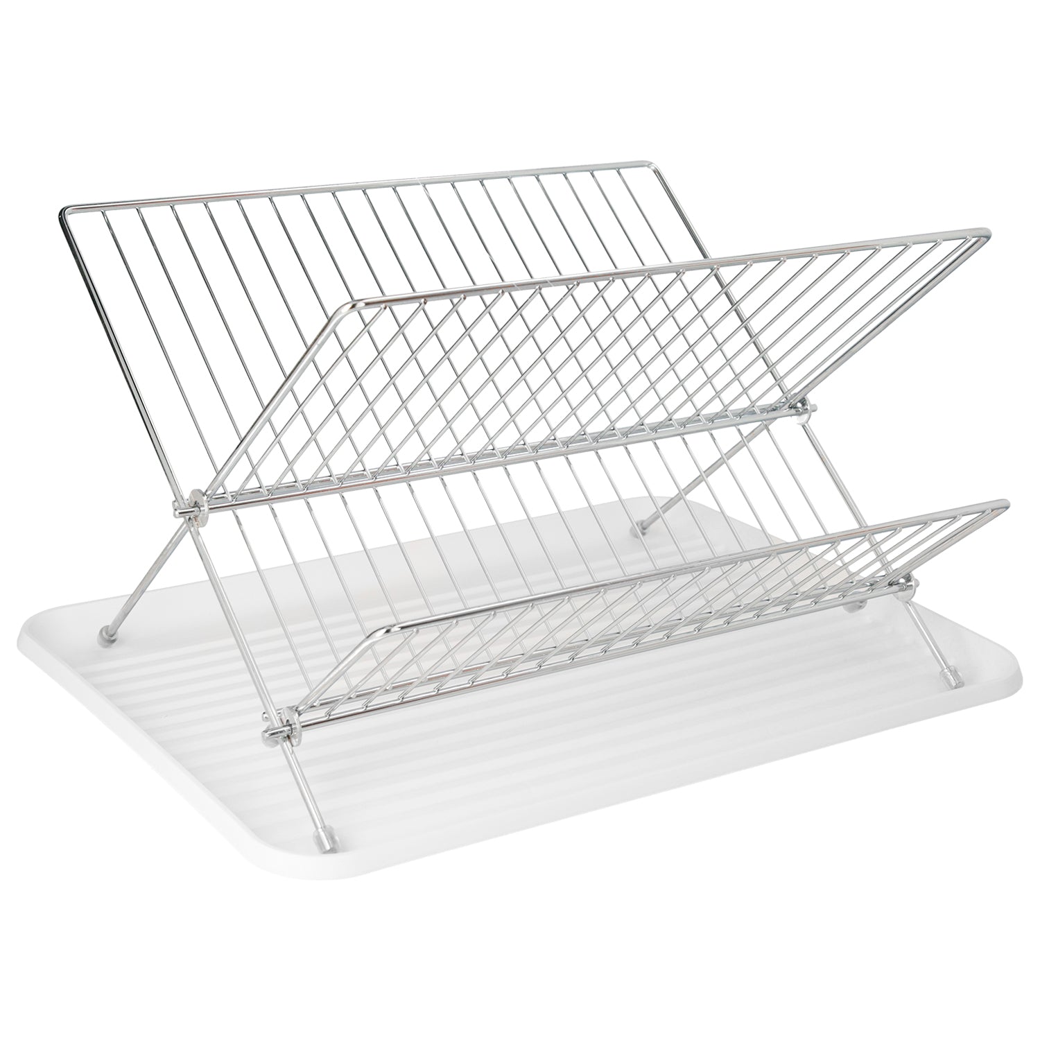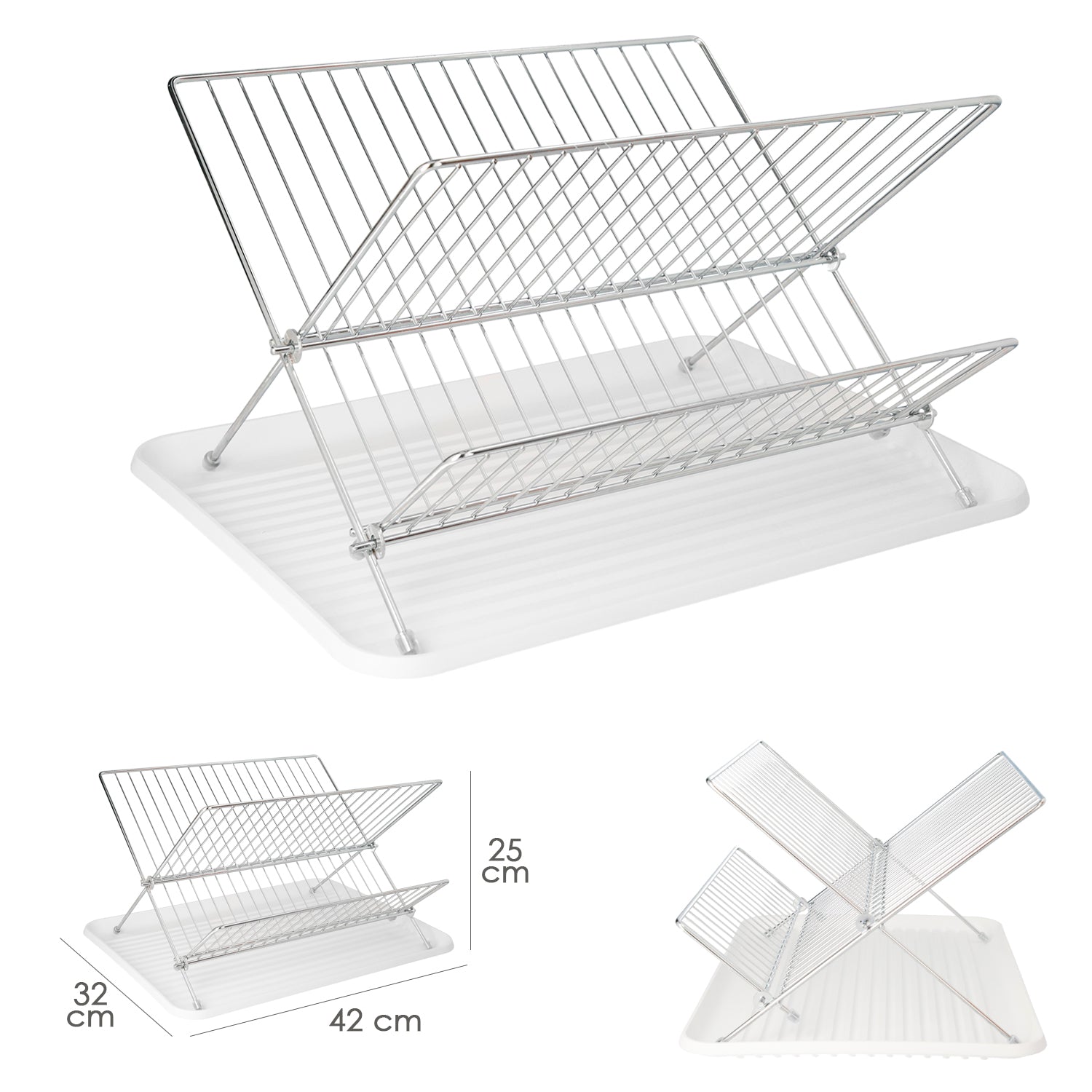 Escurreplatos Plegable Con Rejilla De Acero Cromado Y Bandeja De Secado, 2 Niveles