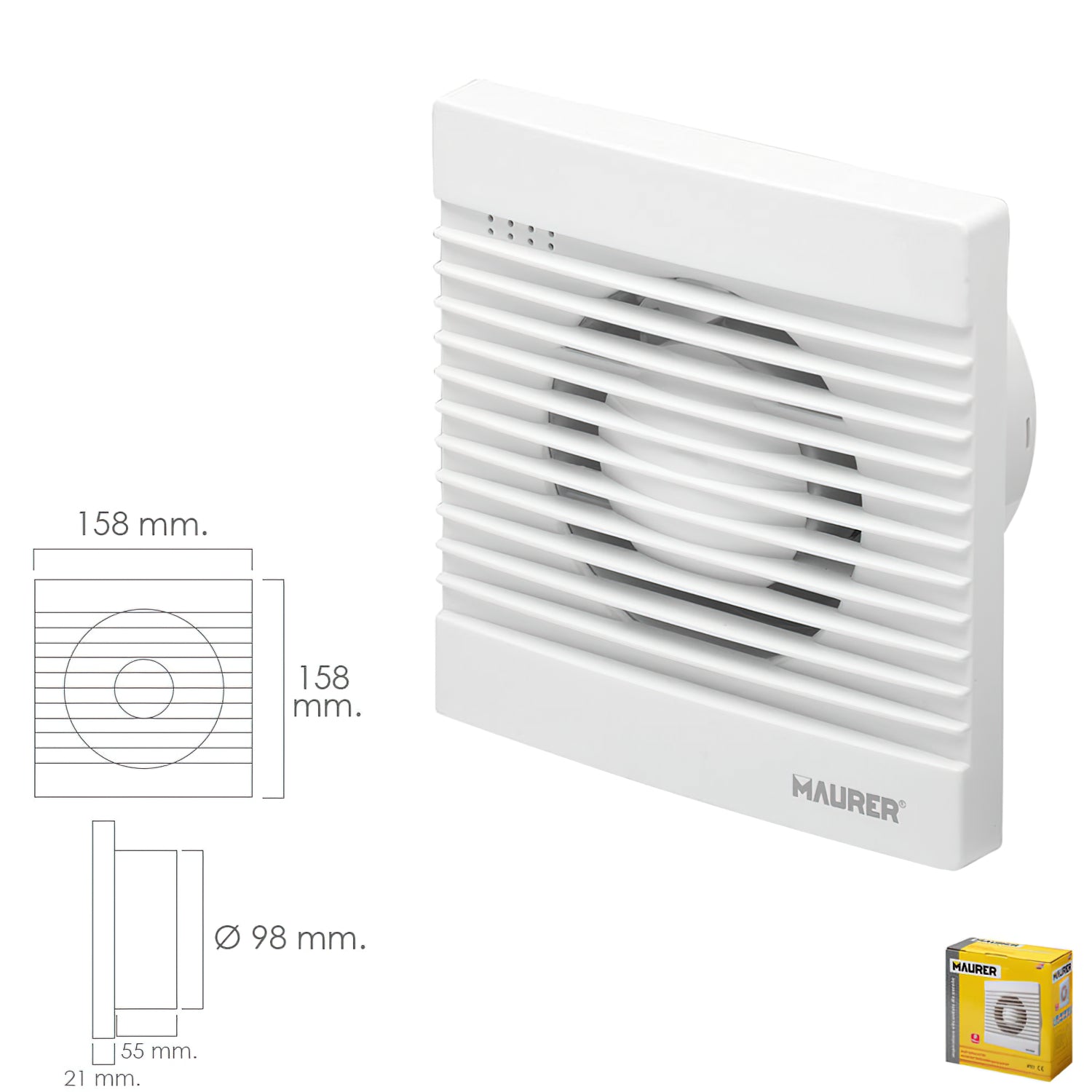 Extractor Humos Baño 13 Watt. Salida Ø 98 mm.