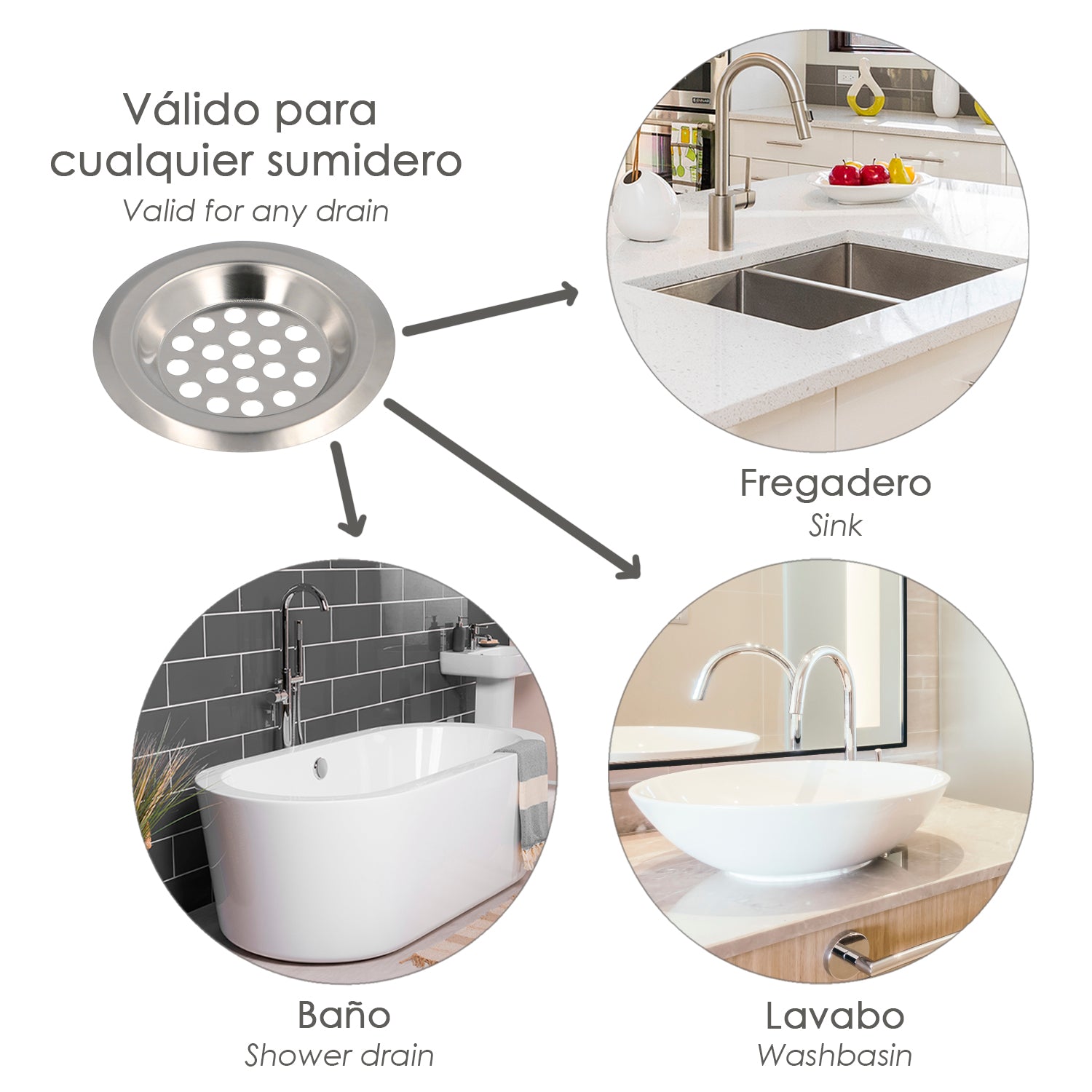 Filtro Cestillo Para Lavabo / Fregadero Inoxidable 6 cm.
