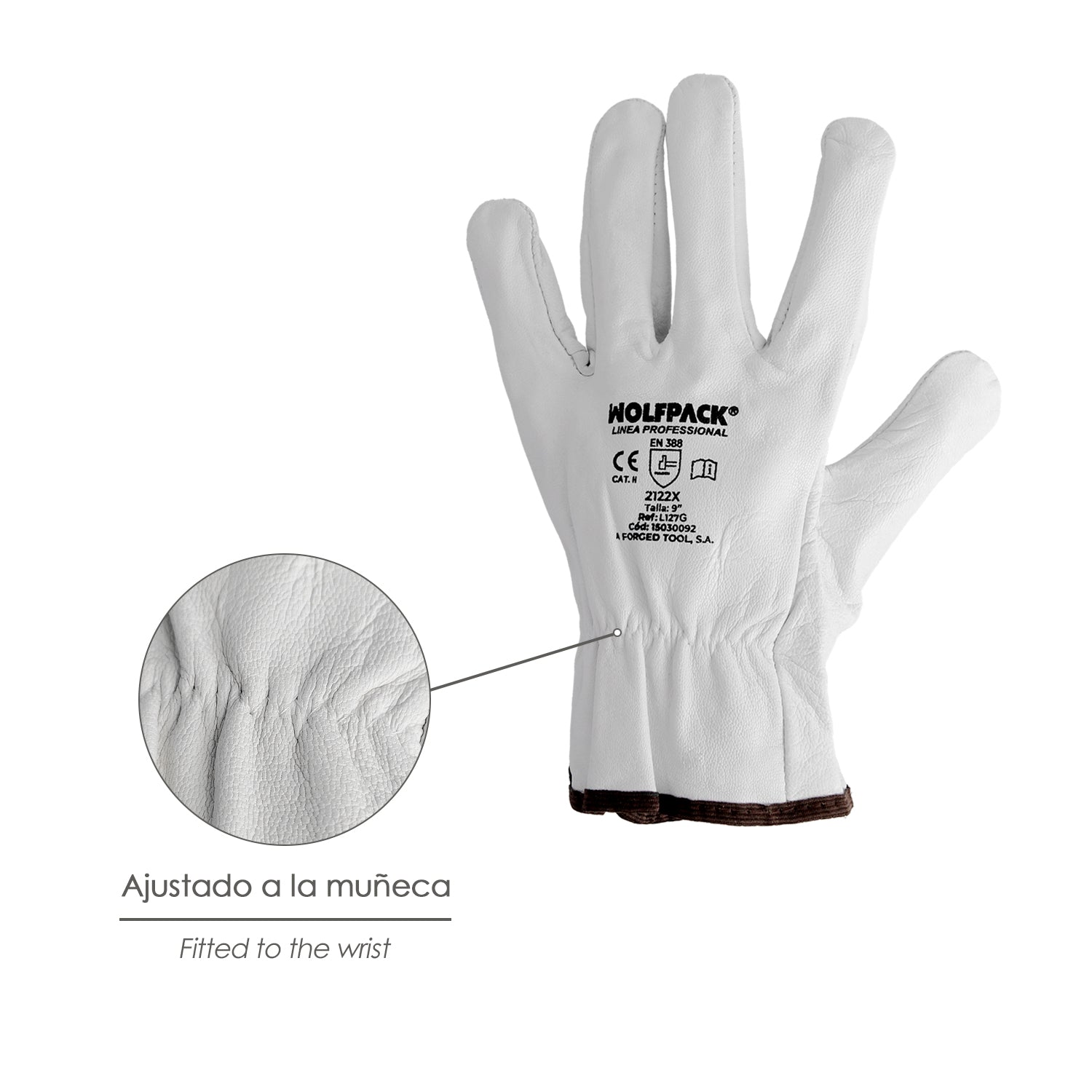 Guantes De Trabajo De Piel Flor De Vacuno, Proteccion Laboral, Riesgos Mecanicos, Guantes De Seguridad De Cuero. Talla 7" (Par)