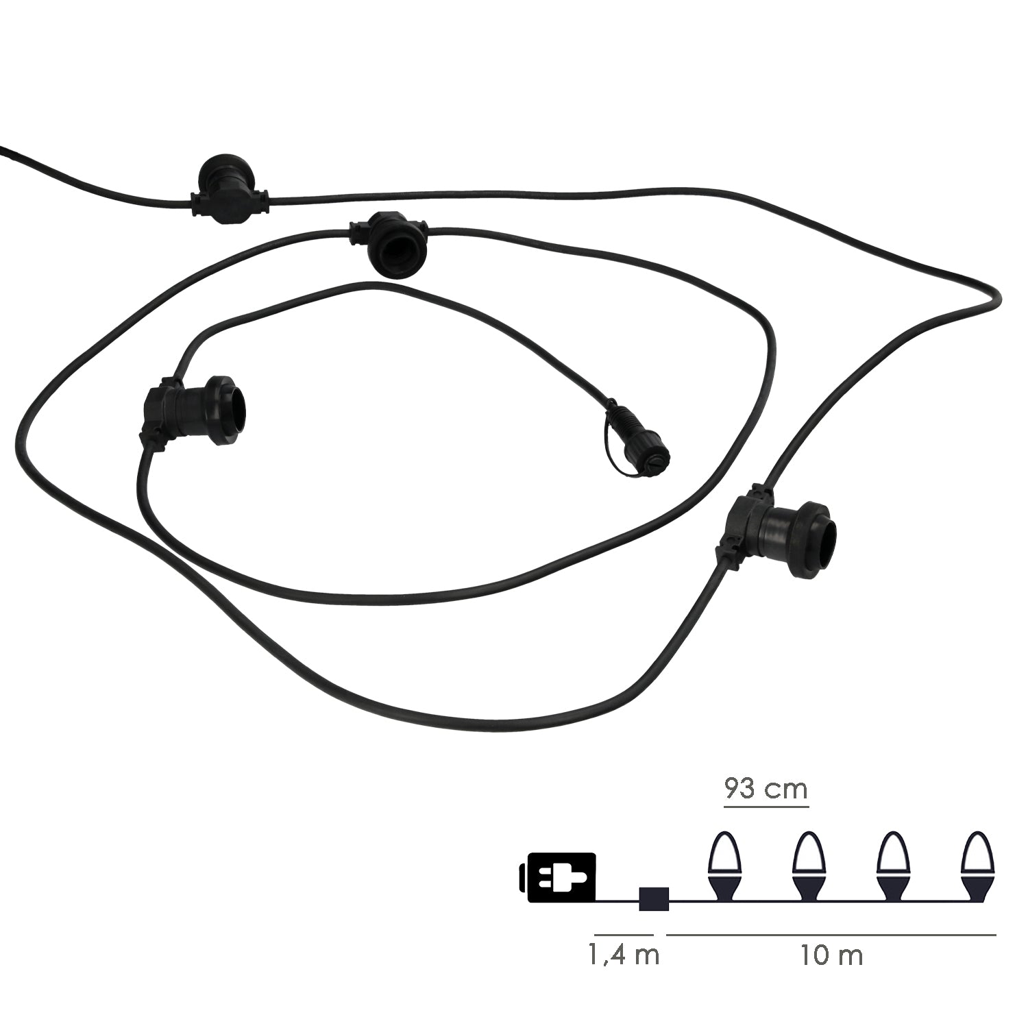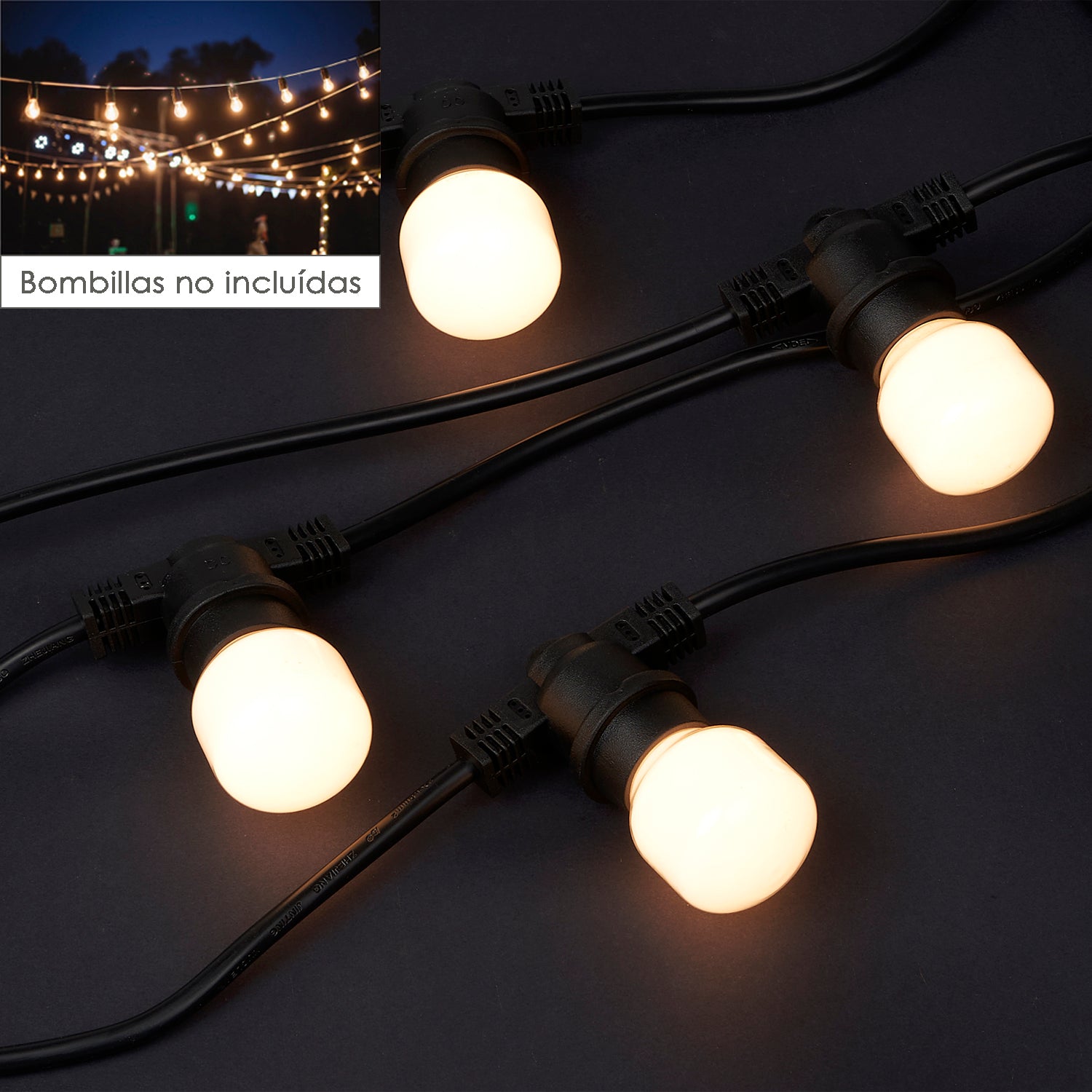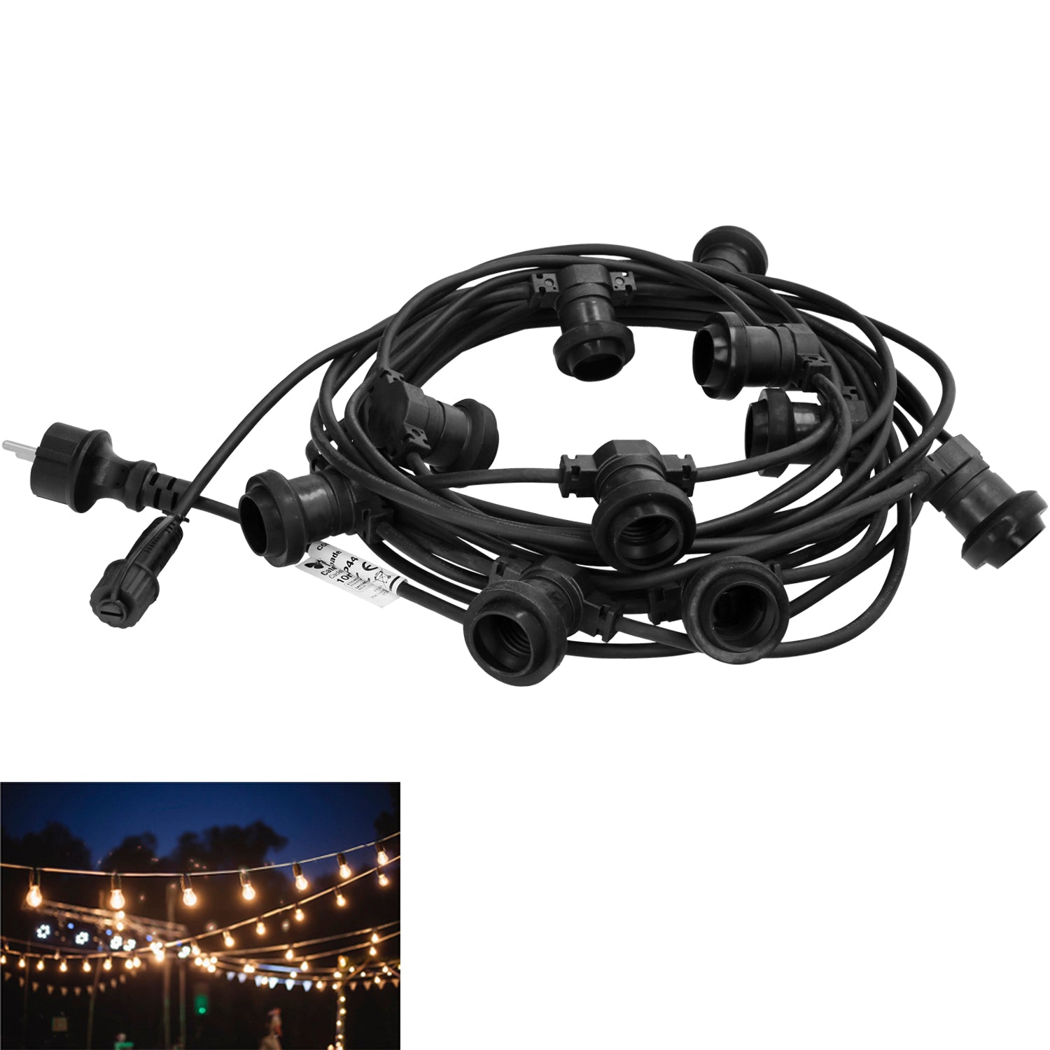 Guirnalda 10 Portalamparas Para Bombillas E27. 10 metros. Protección IP44 (Bombillas No Incluidas)