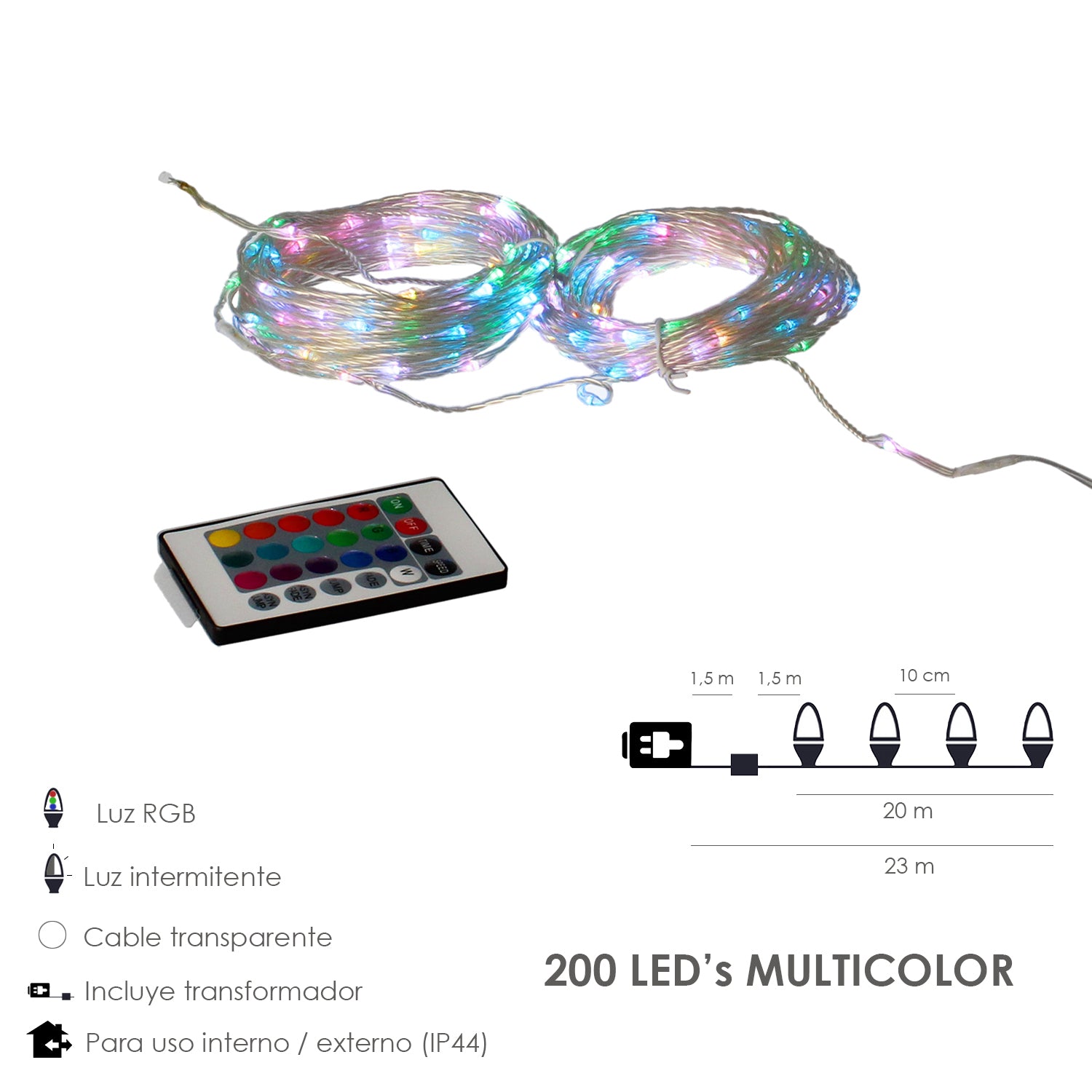Guirnalda Luces Navidad 200 Leds Multicolor RGB Con Mando Luz Navidad Interiores y Exteriores Ip44