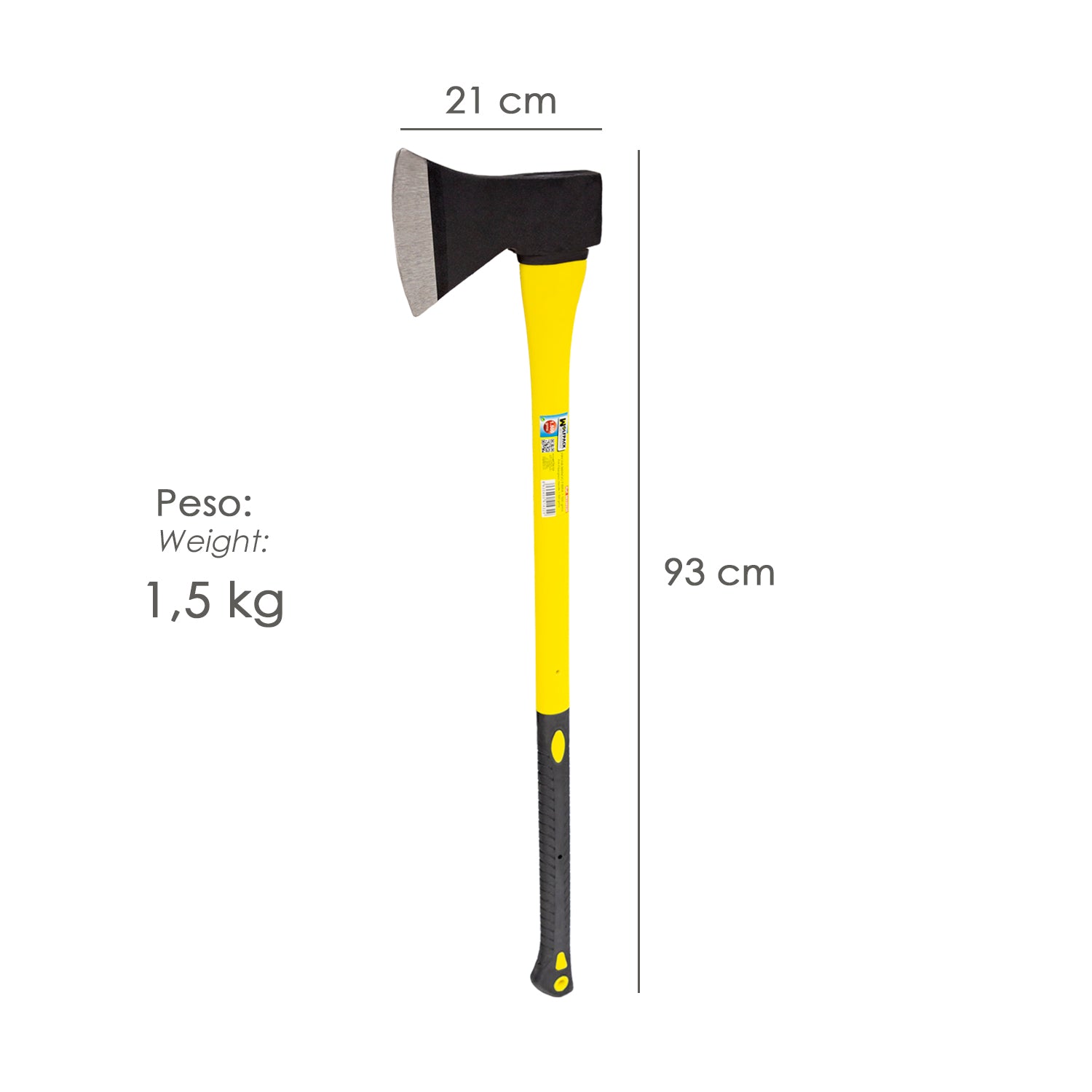 Hacha Cabeza 1.500 Gramos Forjada, Con Mango De Fibra De Vidrio, Hacha Leña, Hacha Ramas, Ligera y Resistente