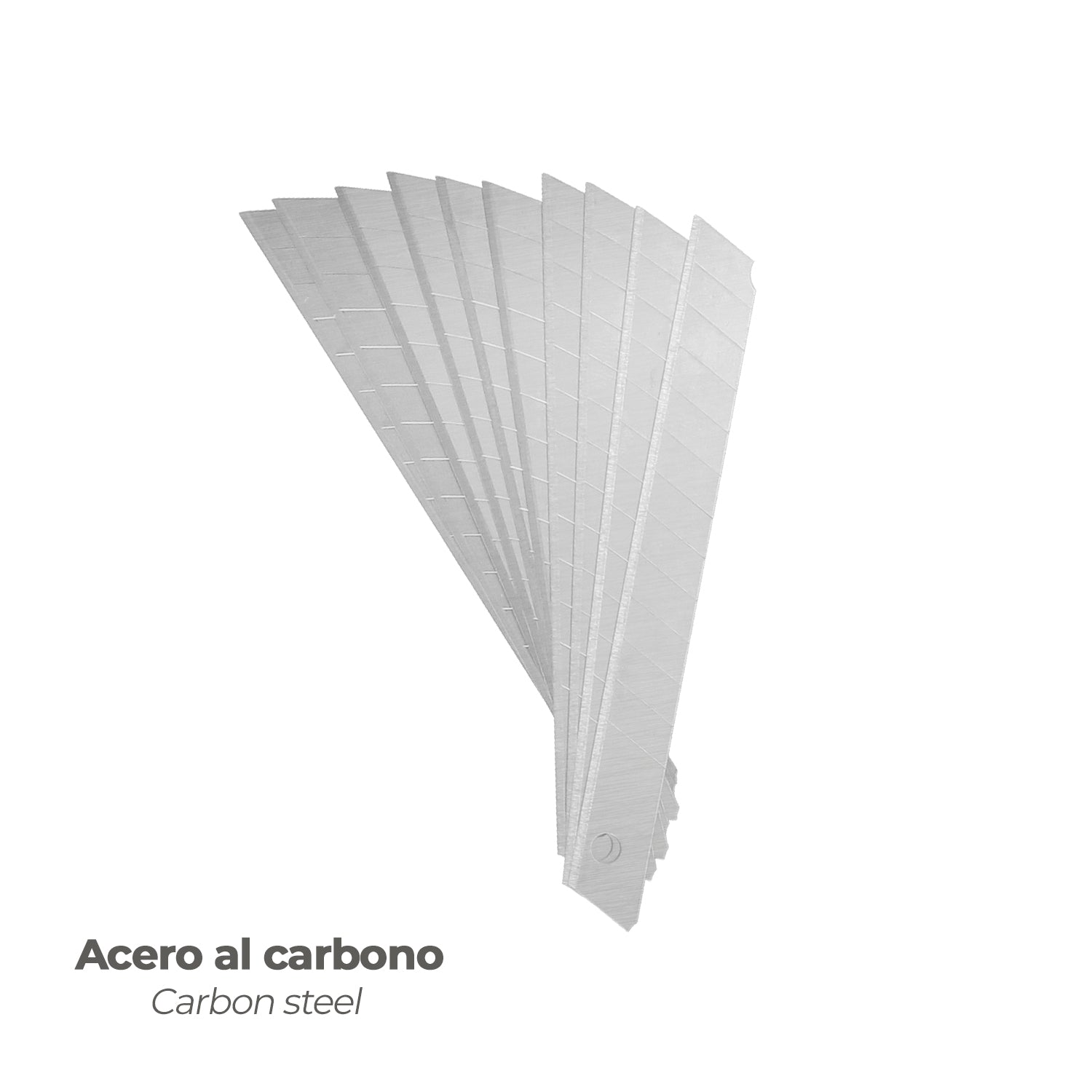 Hoja Cutter 9 mm. (Estuche 10 Piezas) Acero al Carbono.