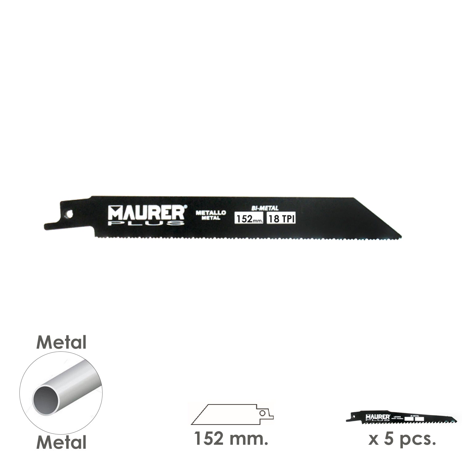 Hoja Para Sierra Sable Metal 152 mm. - 18 TPI Tipo Bosch (5 piezas)