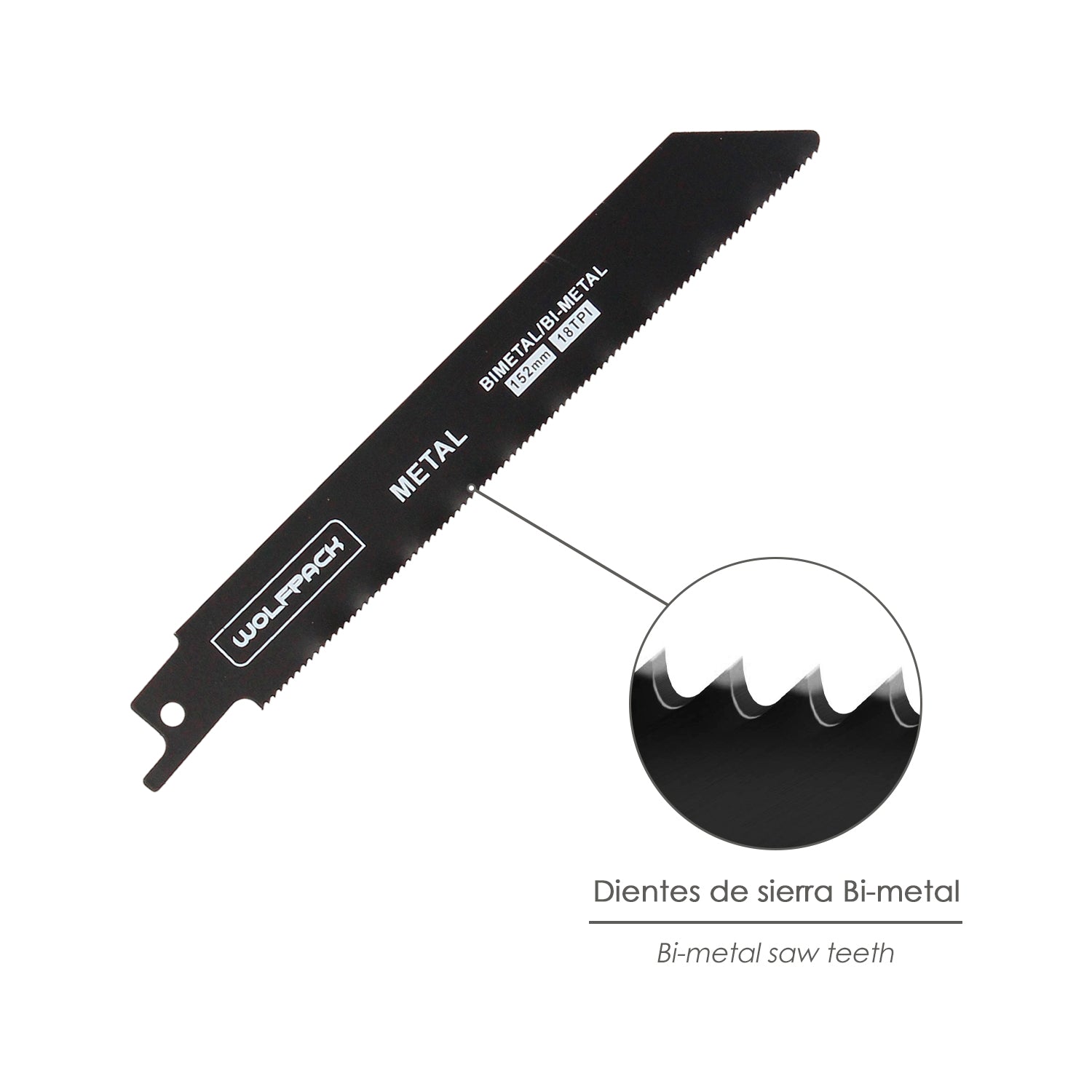 Hoja Sierra Sable Para Metales 152 mm. 18 Tpi. 5 Piezas. Sierra Hierro Aluminio, Cobre, Plastico