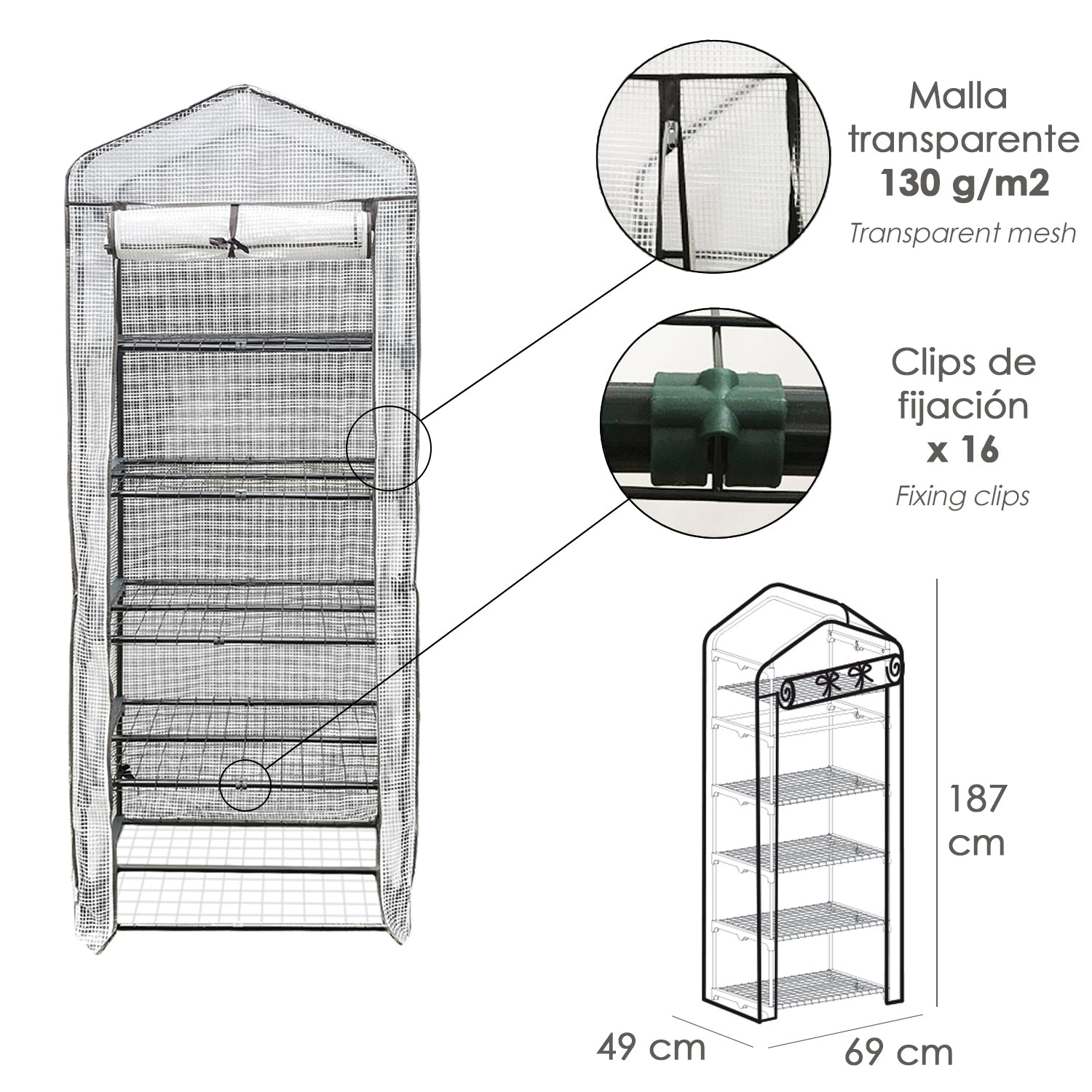 Invernadero Portatil Pvc 5 Niveles 187 cm.