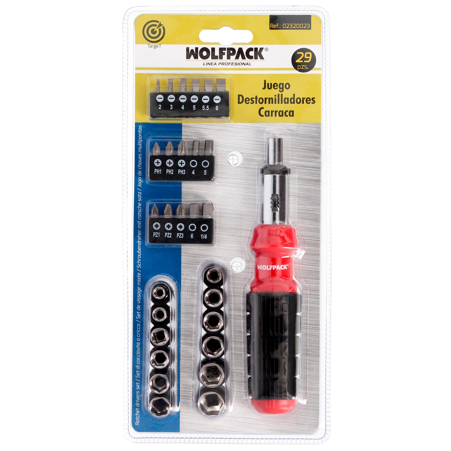 Juego Destornillador Carraca con 29 piezas. (12 vasos y 16 Puntas)