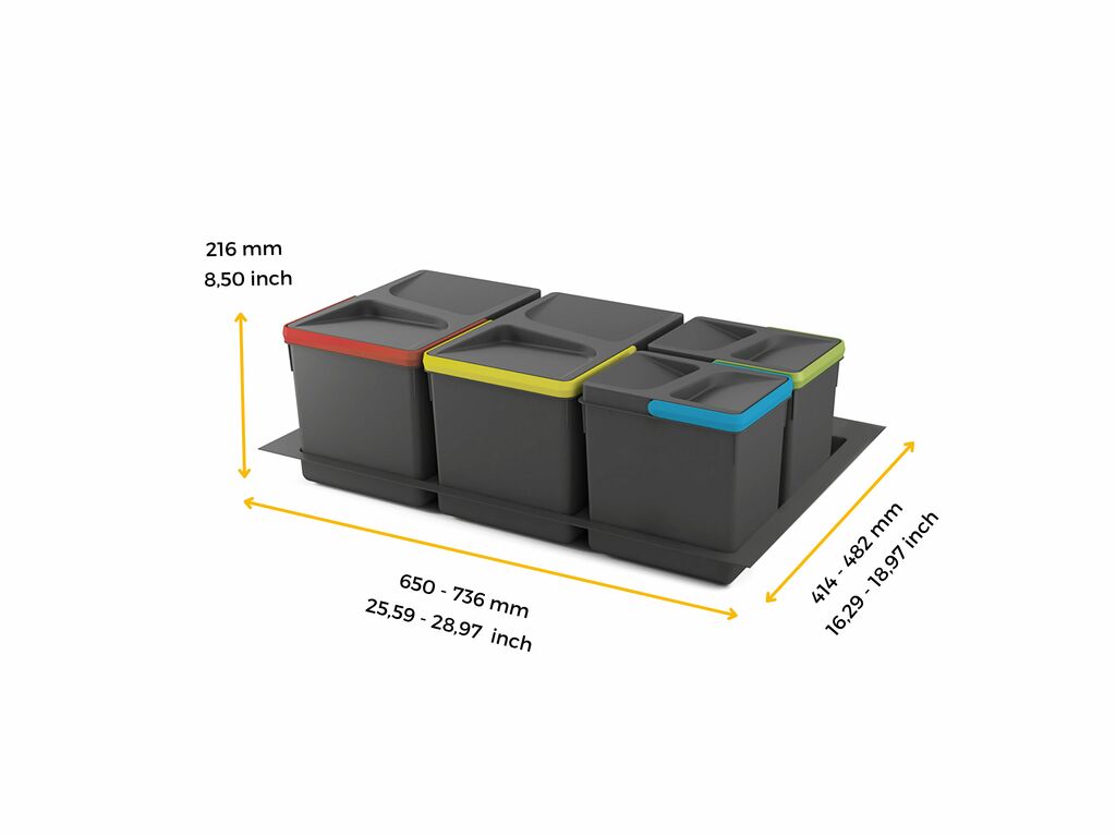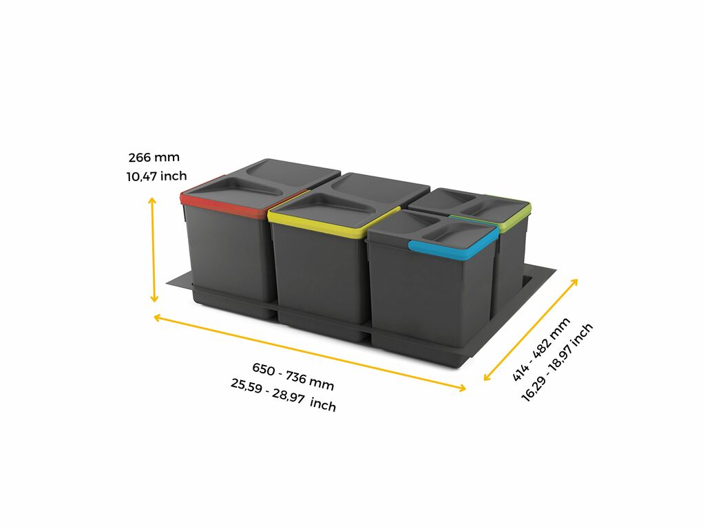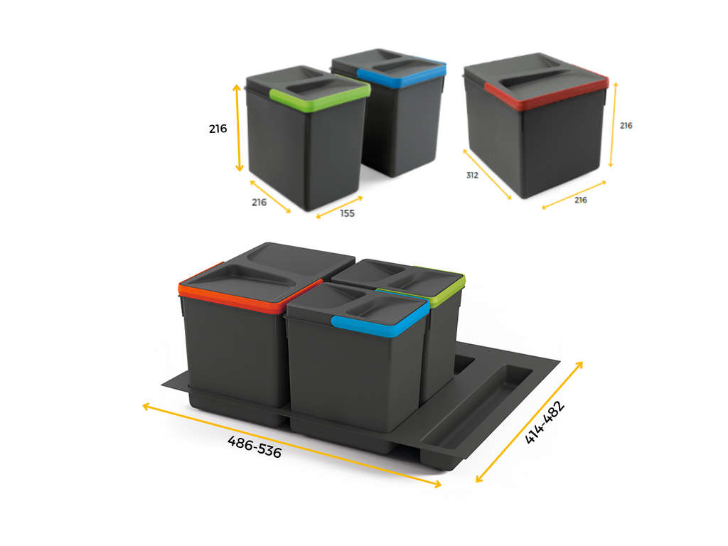 Kit de contenedores de reciclaje para cajón de cocina con base