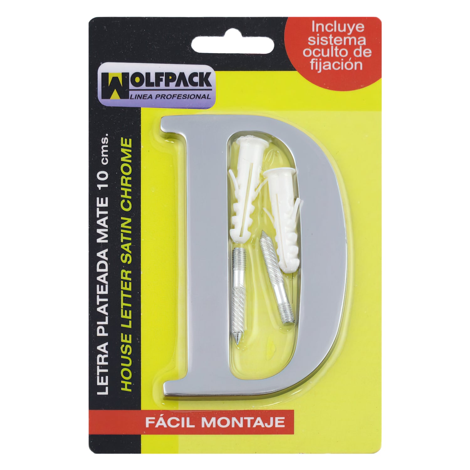 Letra Metal "D" Plateada Mate 10 cm. con Tornilleria Oculta (Blister 1 Pieza)