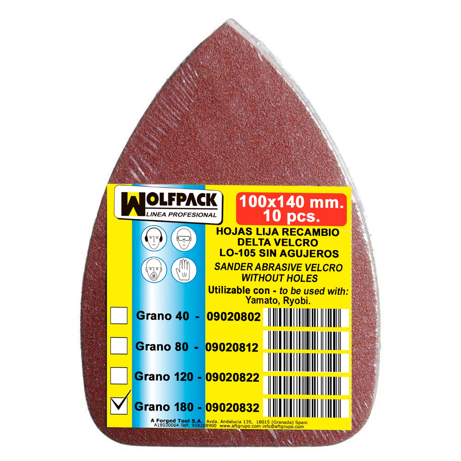 Lija recambio Delta 140x100 mm. sin agujeros grano 180 (10 Piezas)