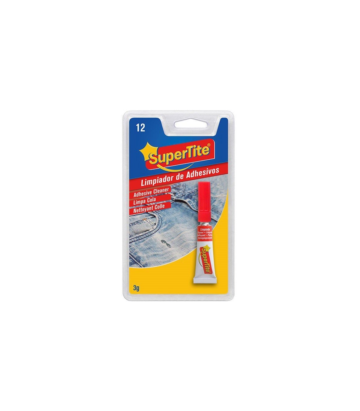 Limpiador adhesivos blister 3 g disolvente en forma de gel especialmente indicado para: eliminar las manchas de los adhesivos sobre ropas y tejidos, objetos mal ensamblados, dedos pegados, superficies de trabajo manchadas, etc. y de forma particular eliminar los chicles pegados. resolver la mayoría de problemas relacionados con los derrames accidentales y usos indebidos de todo tipo de pegamentos. limpiar la cánula de aplicación o boca del envase de cianoacrilato que pudiera haber quedado obstruido