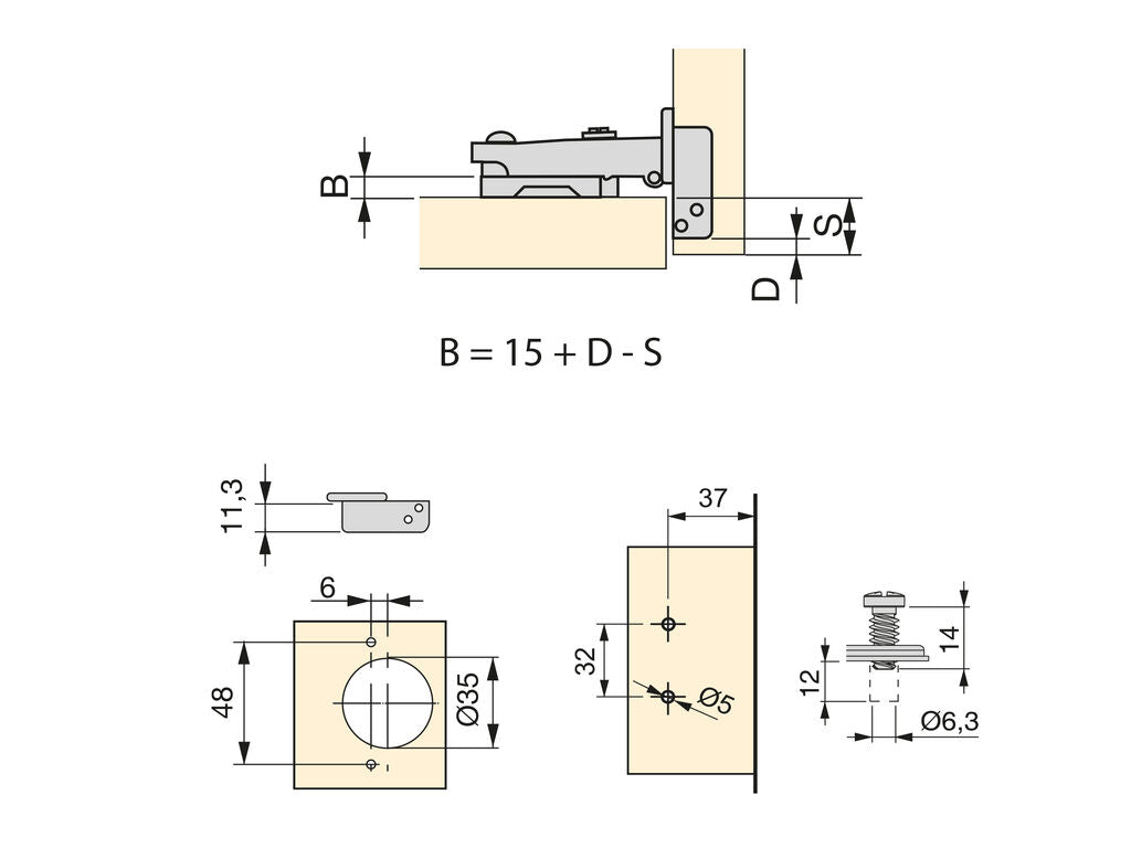 • 20 bisagras, 20 suplementos, tornillos de montaje