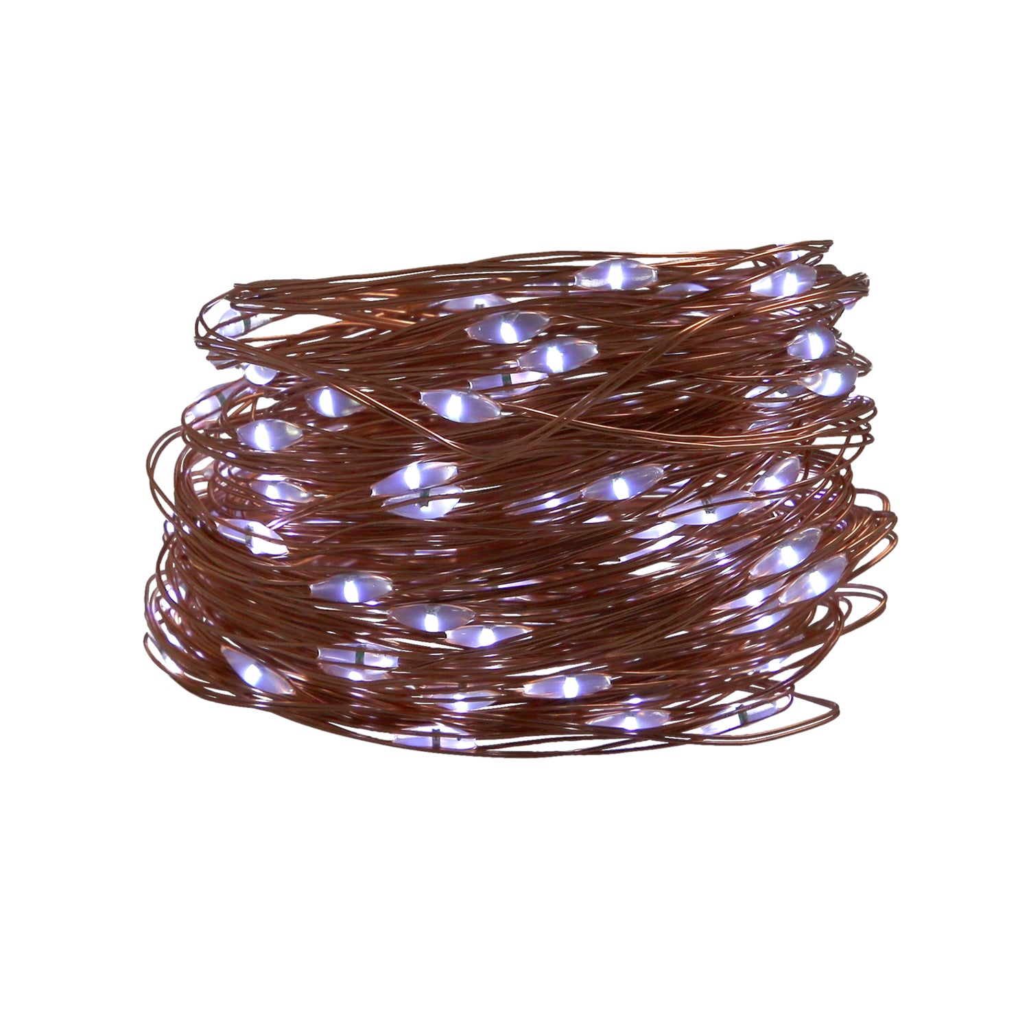 Luces Navidad 100 Microleds Blanco Frio, Cable Color Cobre Funcionamiento A Bateria (3 AA No incluidas) o Con Cable USB. IP44