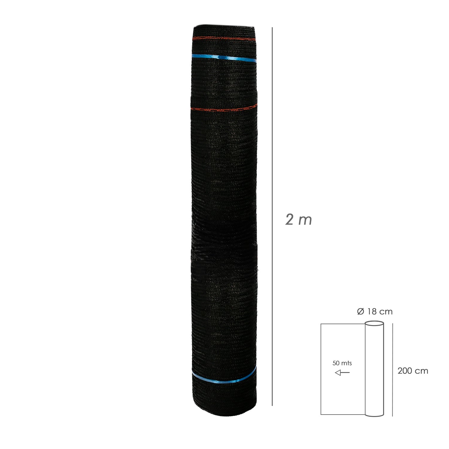 Malla Sombreo Negro 2,0 Metros Rollo 50 Metros, Reduce Radiación, Protección Jardín y Terraza, Regula Temperatura, Color Negro
