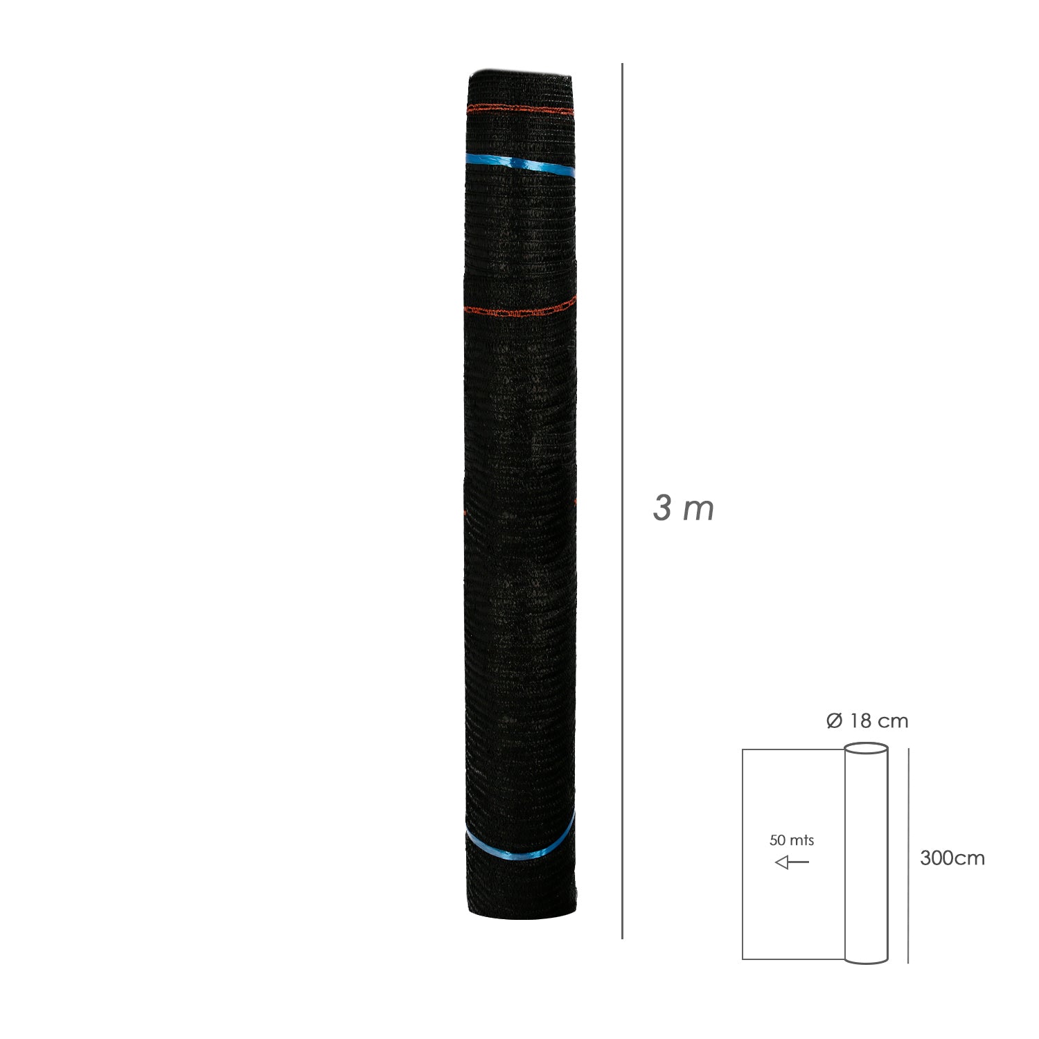 Malla Sombreo Negro 3,0 Metros Rollo 50 Metros, Reduce Radiación, Protección Jardín y Terraza, Regula Temperatura, Color Negro
