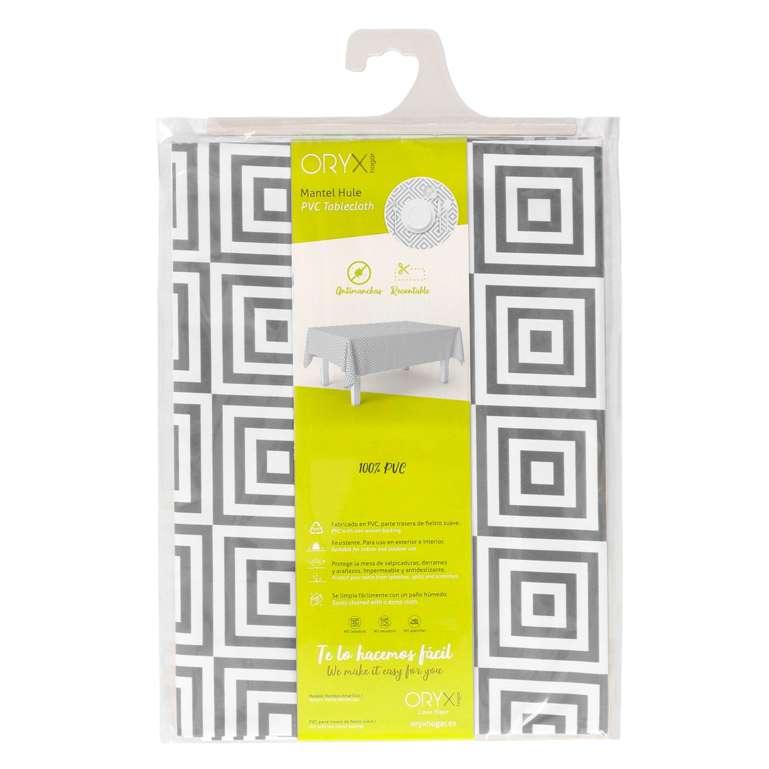 Mantel Hule Rectangular Rombos Grises Impermeable Antimanchas PVC 140x250 cm. Recortable Uso Interior y Exterior
