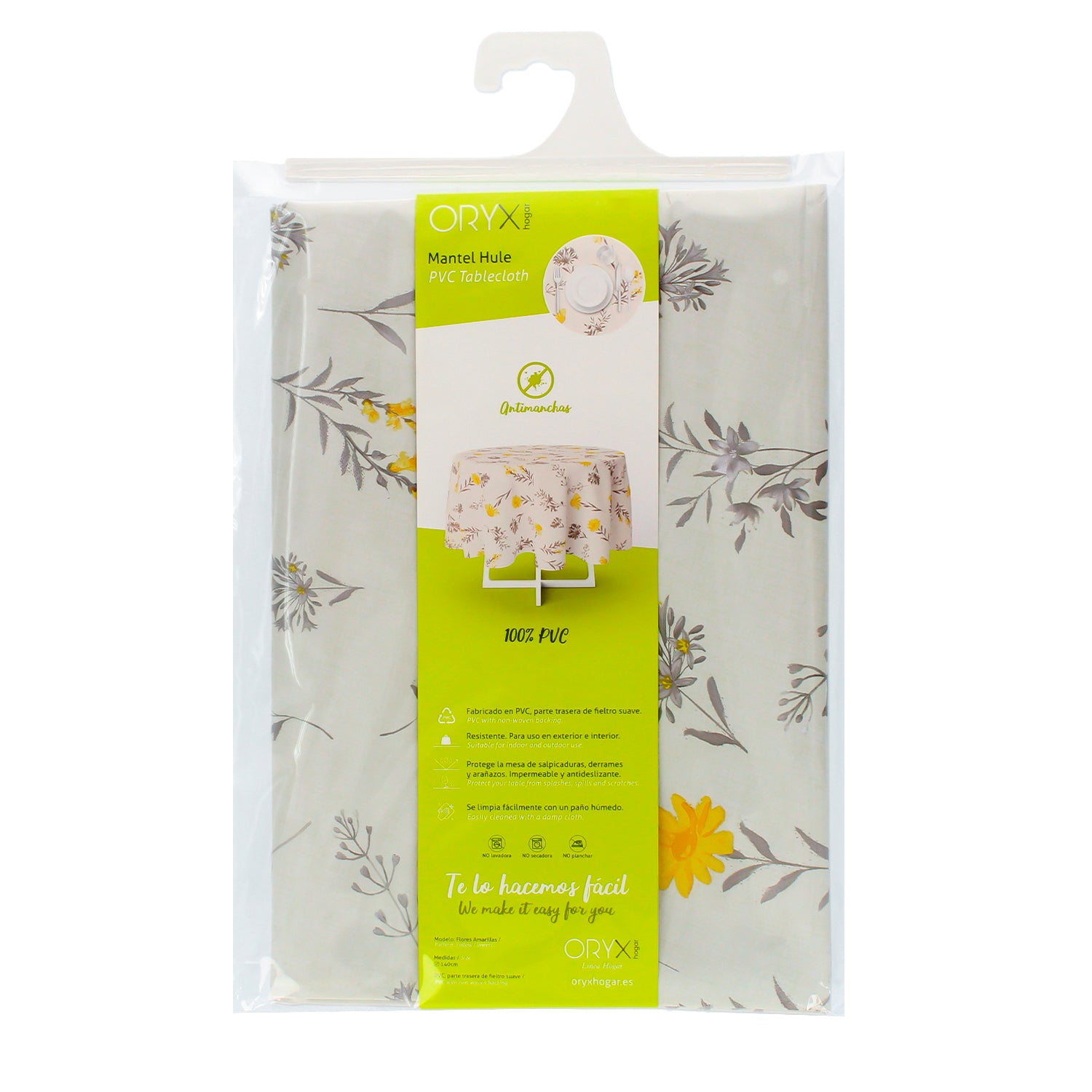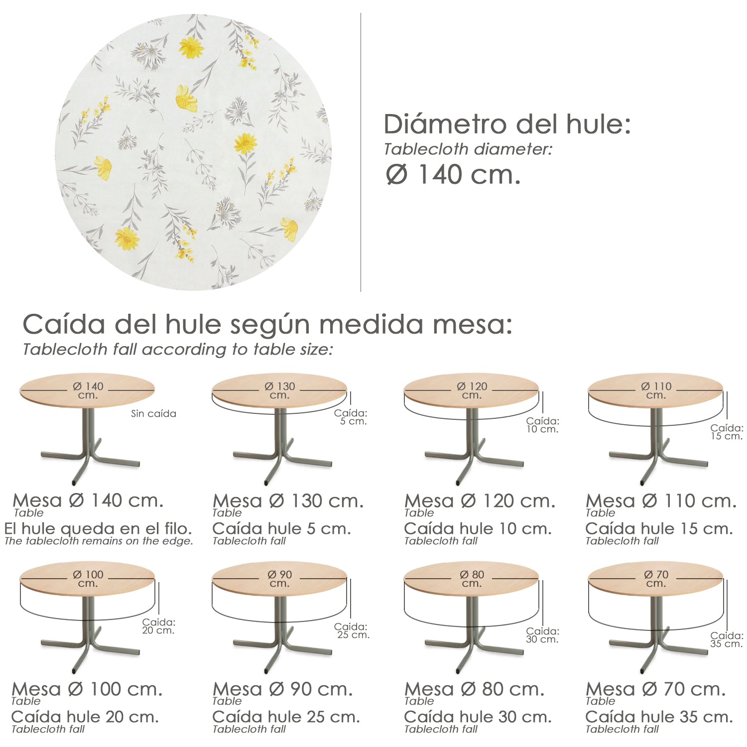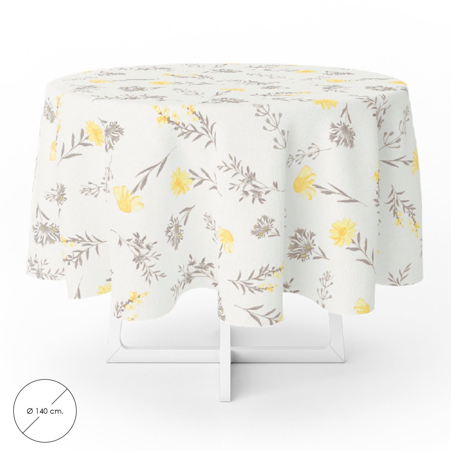 Mantel Hule Redondo Flores Amarillas Impermeable Antimanchas PVC Ø140 cm. Uso Interior y Exterior