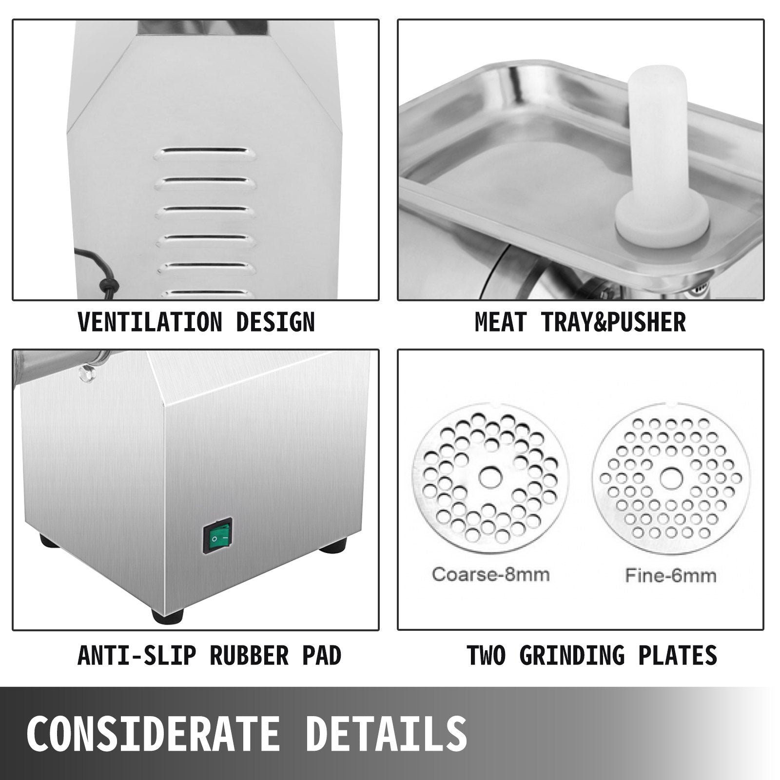 VEVOR Máquina picadora de carne de acero Inoxidable 75 kg por hora. Picadora de carne eléctrica embutidora de salchichas