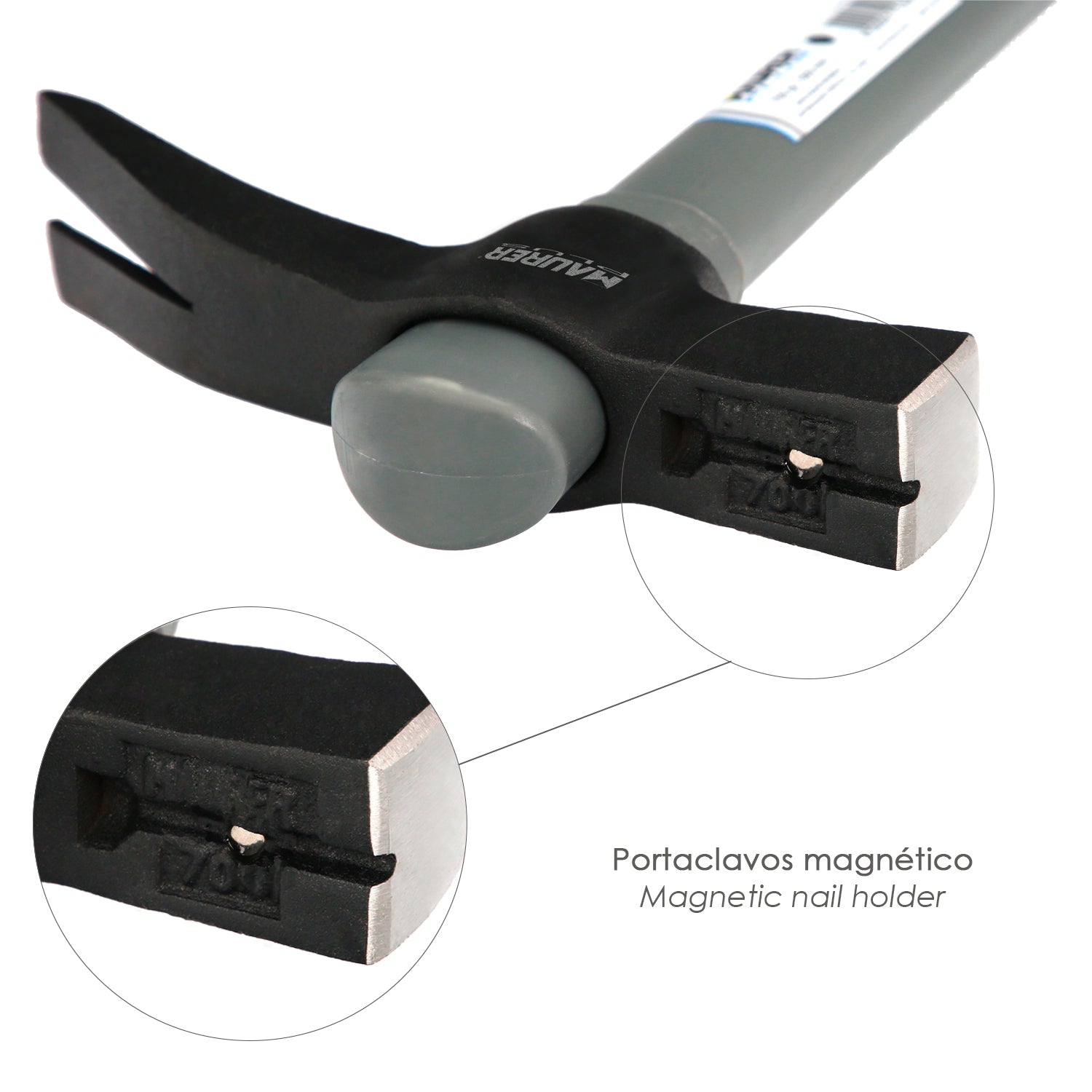 Martillo Encofrador Mango Fibra Vidrio 700 Gramos Magnético