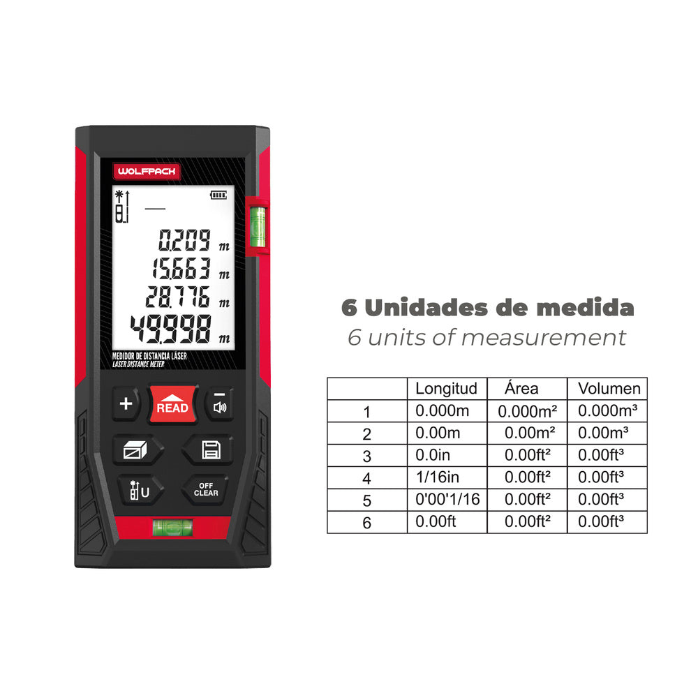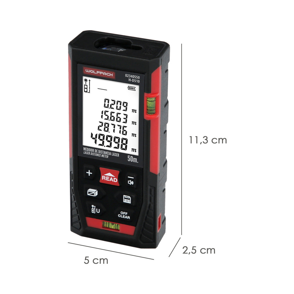 Medidor Laser 10 Funciones 50m Funciona Con 2 Pilas AAA (No Incluido)