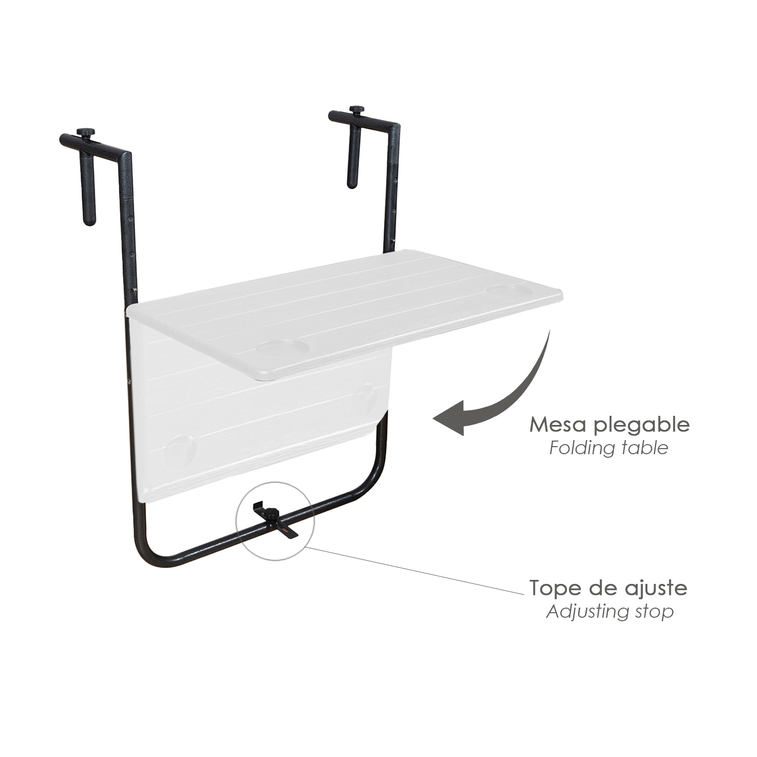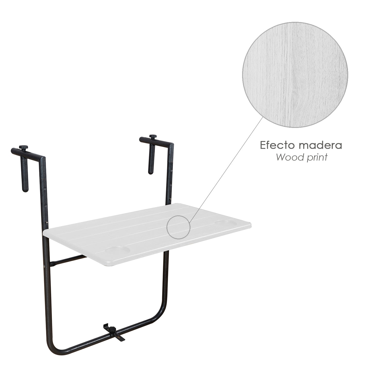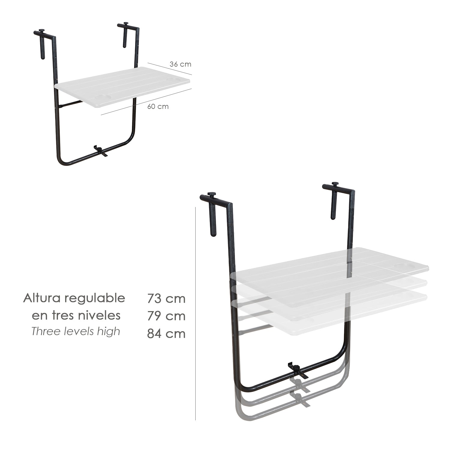 Mesa Plegable Colgante Para Balcones / Terrazas 36x60 cm. Altura Regulable