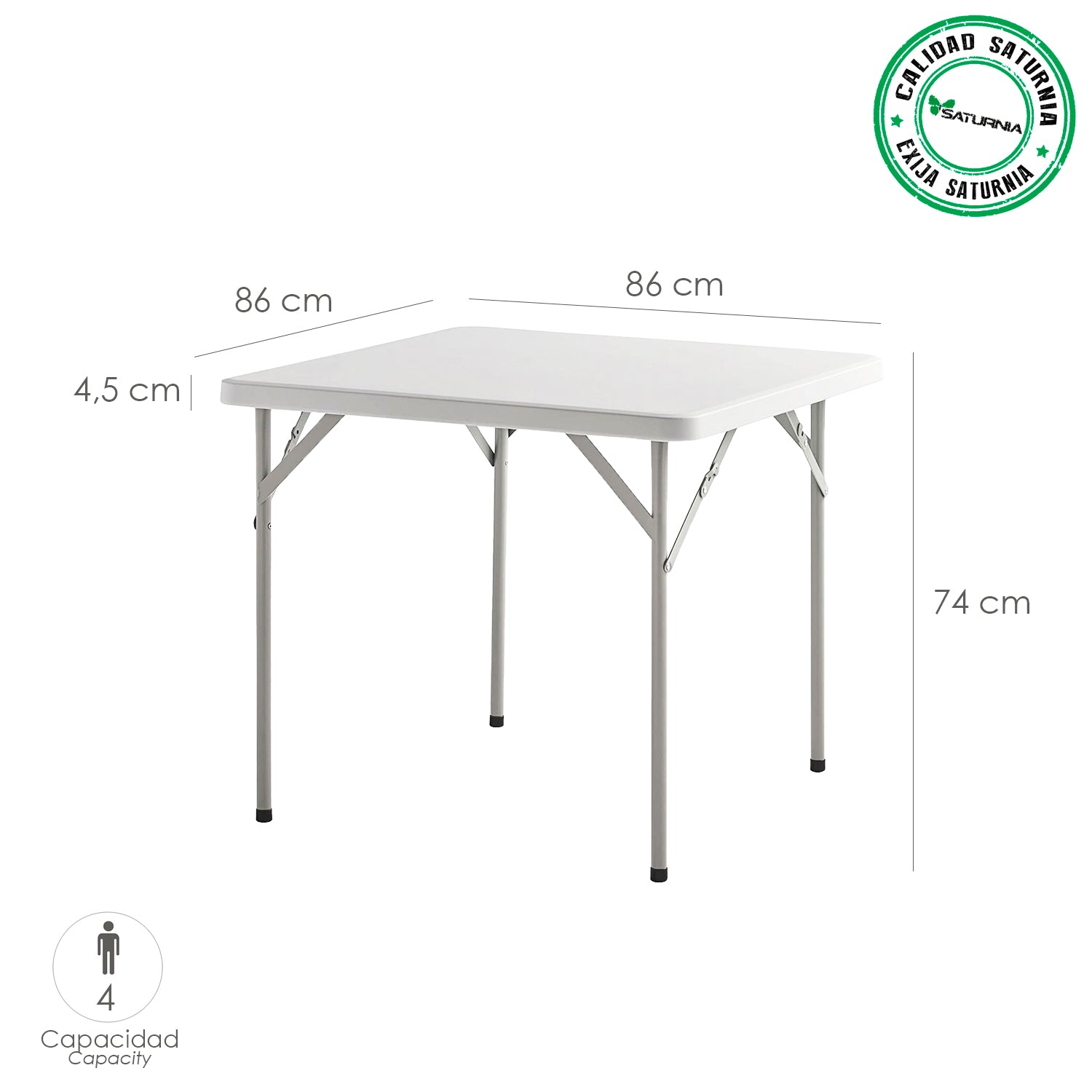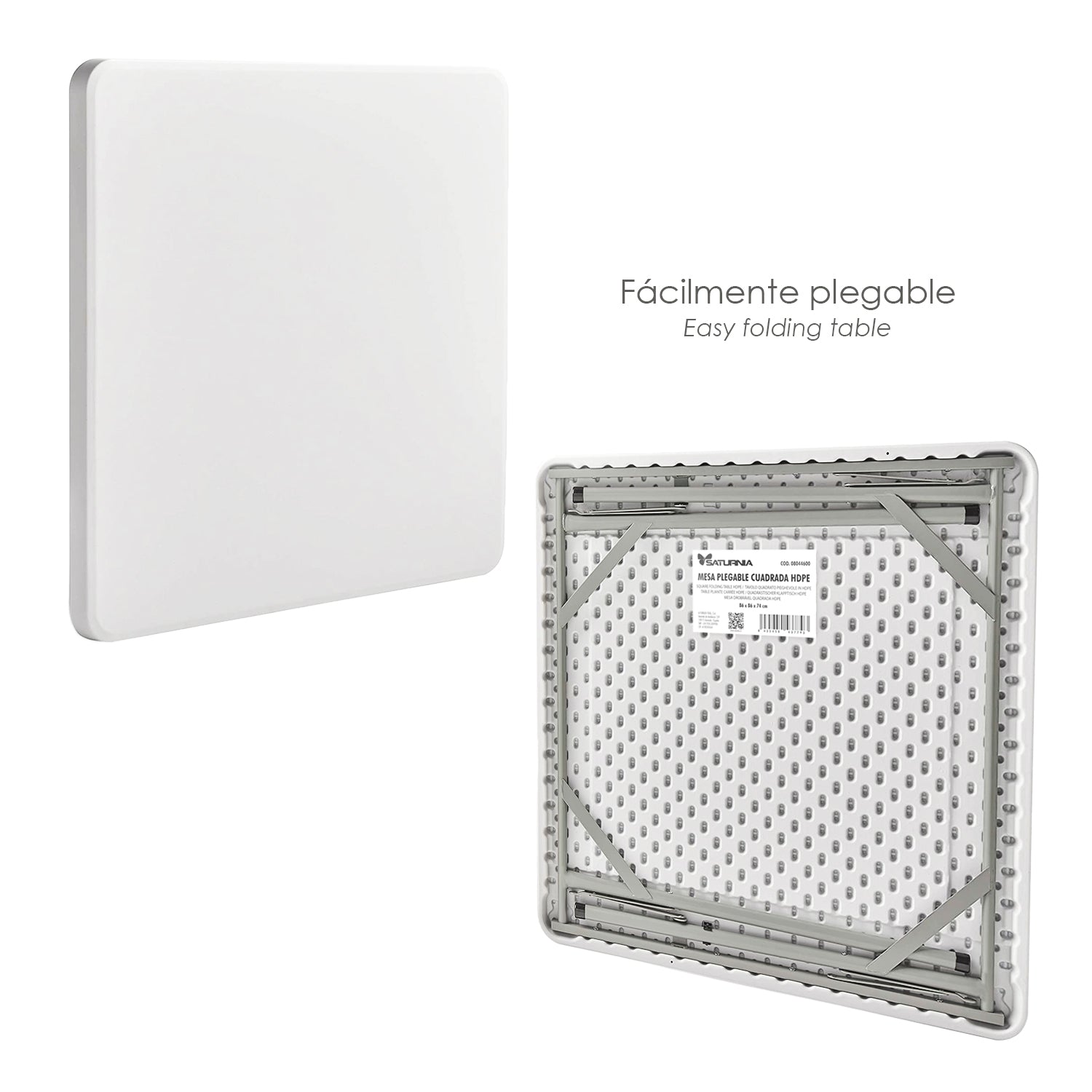 Mesa Plegable Cuadrada Multifuncional, Portatil, Resistente,Multiusos 86x86x74 cm. Color Blanco