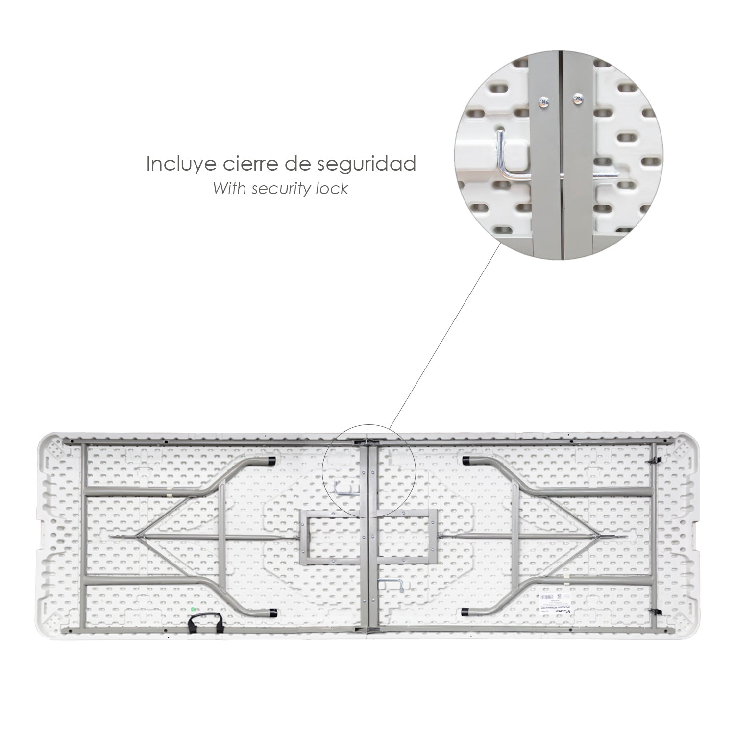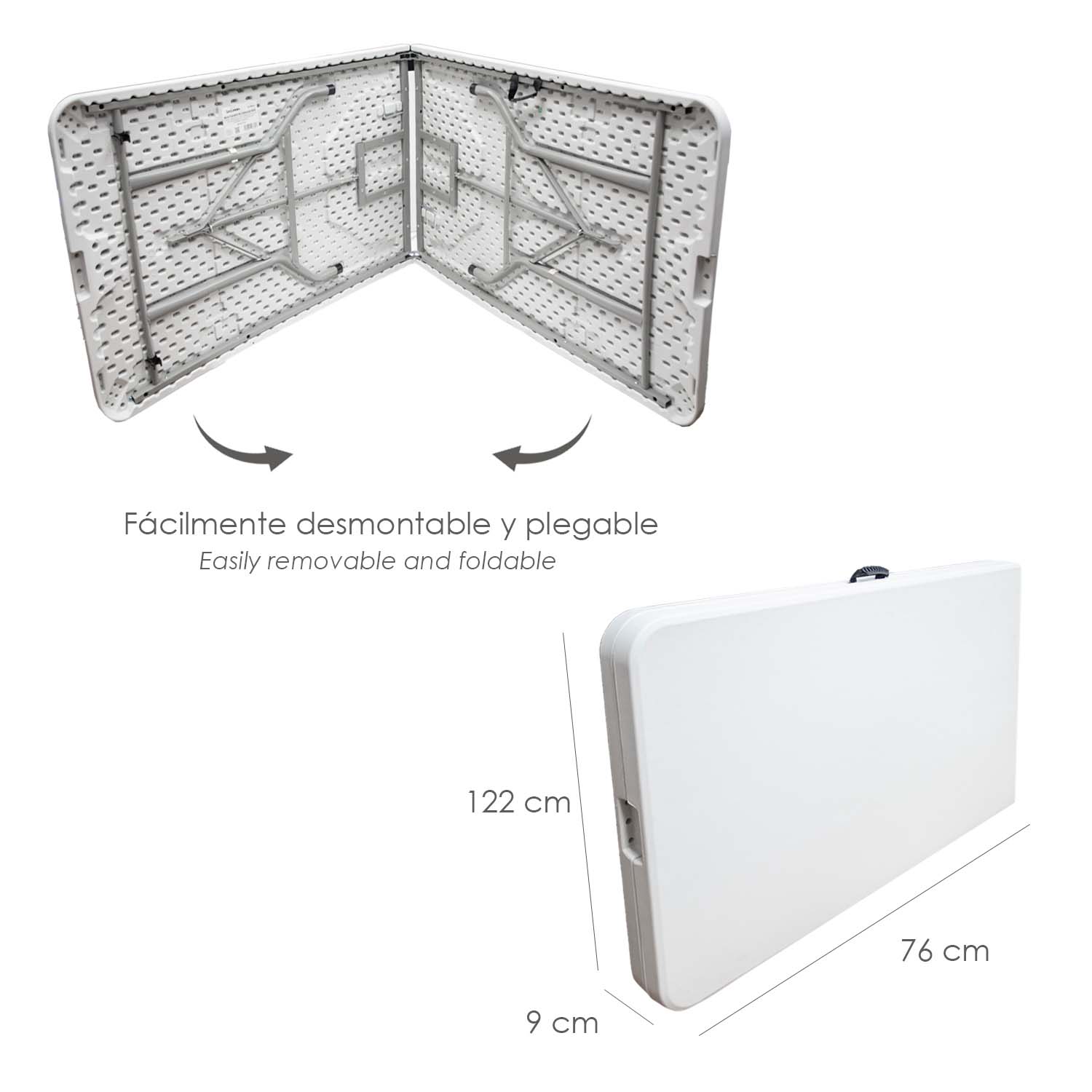 Mesa Plegable Rectangular HDPE Multifuncional, Portatil, Resistente,Multiusos 244x76x74 cm. Color Blanco