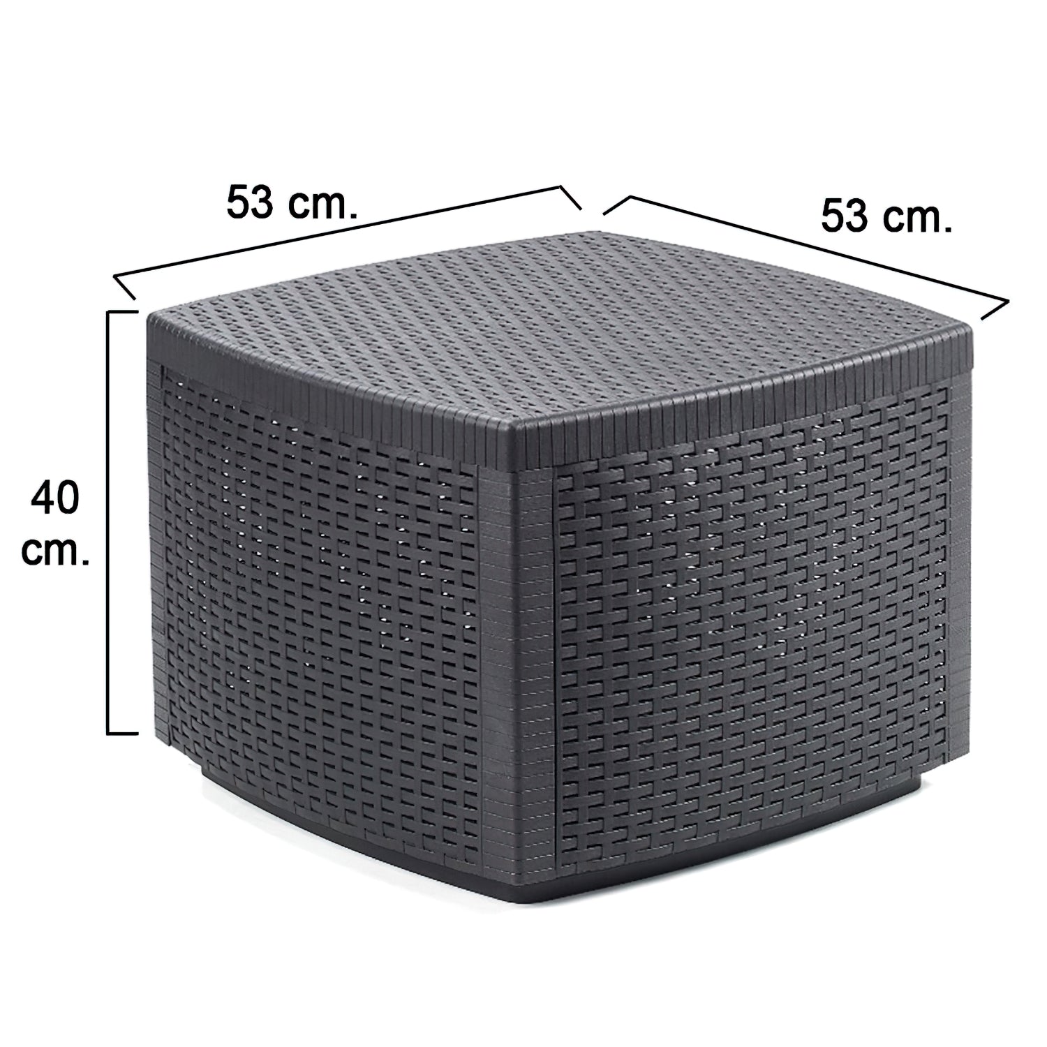 Mesa Resina Auxiliar Simil Rattan Cofre 53x53x40 cm.